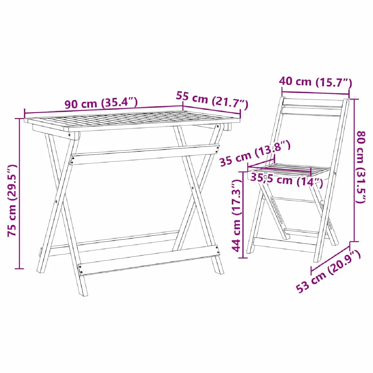 - Design pliable : Chaque chaise du set se plie facilement, ce qui facilite le rangement ou le transport. Cette fonctionnalité est super pratique, surtout si vous avez un espace extérieur limité, vous offrant plein de possibilités d'agencement sans encombrement.