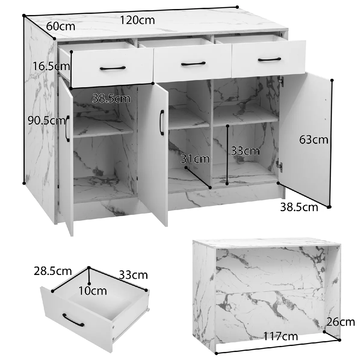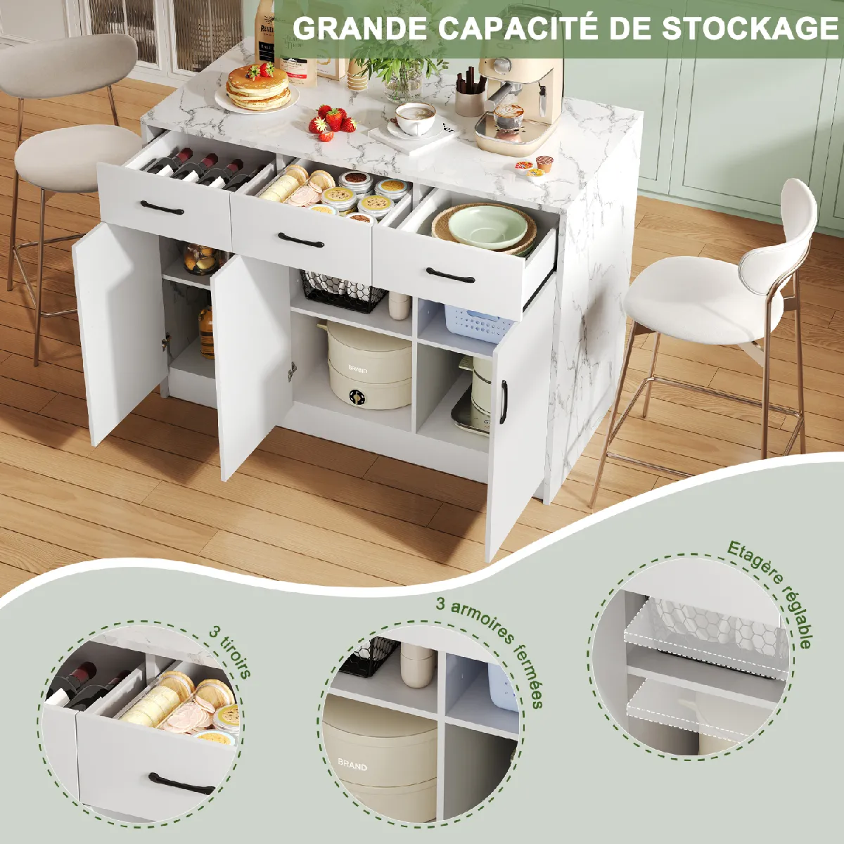 OKWISH Desserte cuisine, 3 tiroirs + 3 portes, plan marbre, blanc