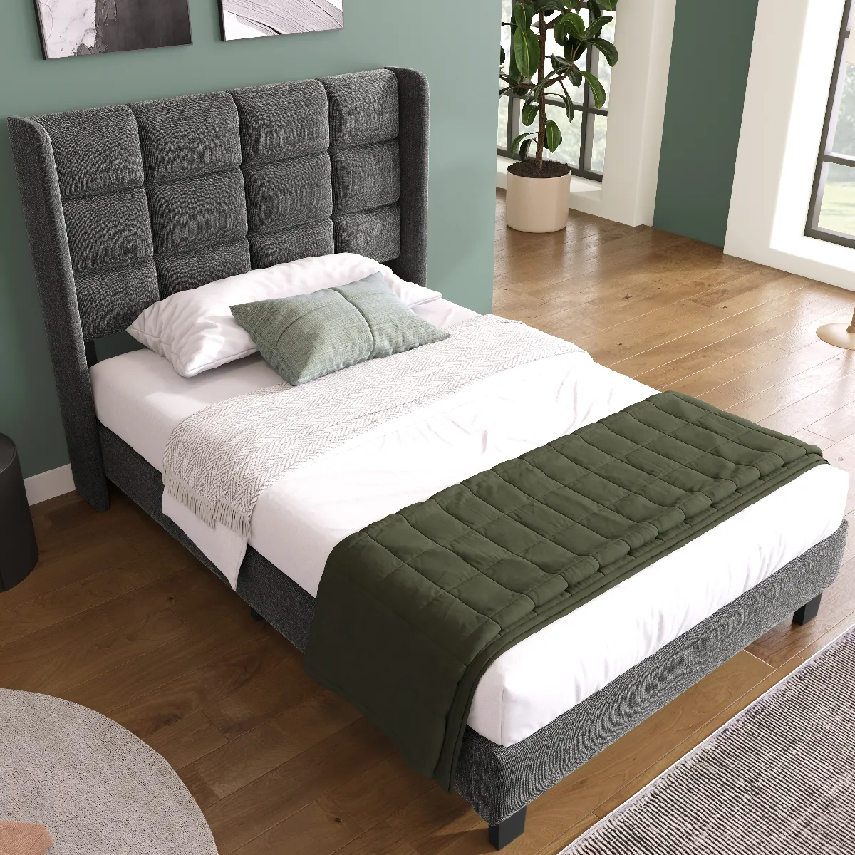 OKWISH Lit simple 90x200 cm Lit lin - Gris |