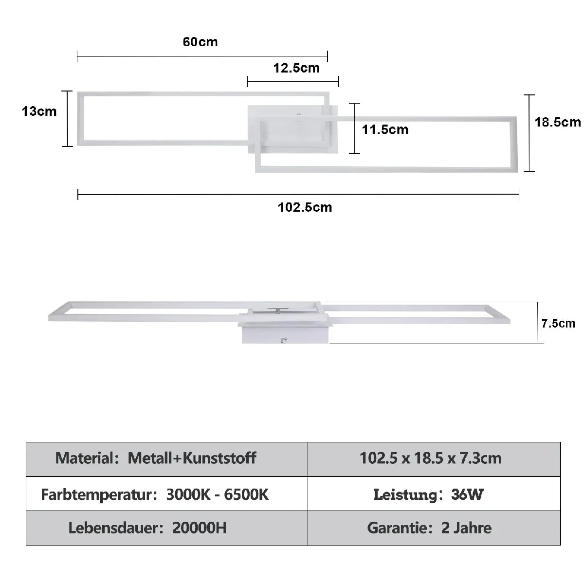 Spécifications du produit : Taille : 102,5 x 18,5 x 7,3 cm ; Valeur lumineuse : 3600 ; Puissance : 36 W ; Tension : 220-240 V ; Intensité variable : 10 % à 100 % ; Température de couleur : 3000K-6500K blanc chaud ; Classe de protection : IP20 ; Indice de rendu des couleurs : 80+.