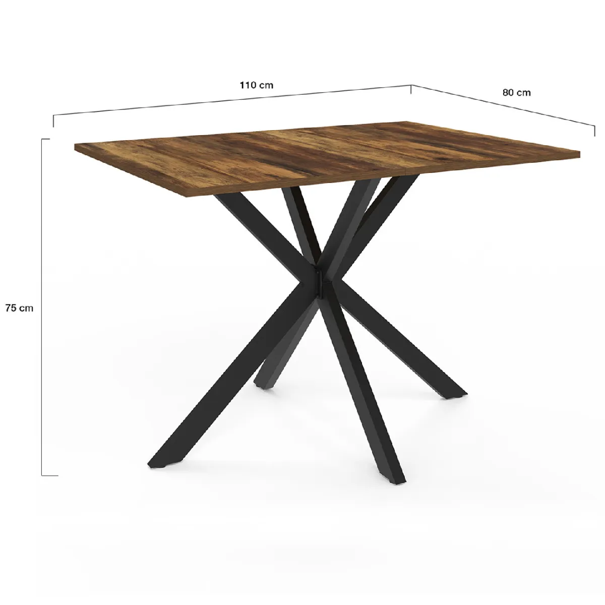 Quoi de plus design qu'une table rectangle pied araignée pour votre coin repas ? Le look industriel s'invite dans votre salle à manger grâce à cette table rectangle bicolore coloris bois foncé et noir 110 cm très rustique avec pied araignée en métal noir tendance. Apportez du caractère à votre salle à manger !L'association du bois effet vieilli et du piètement en métal noir de cette table rectangle pied araignée est idéale pour apporter un esprit factory et chaleureux, ainsi qu'une touche d'originalité à votre décoration intérieure.Conçue pour accueillir jusqu'à 6 personnes, la table rectangle 110 cm pied araignée bois foncé et noir ALIX plateau HAWKINS est à la fois compacte et généreuse. Pratique pour les repas du quotidien, elle est également parfaite pour réunir des amis ou de la famille pour un moment de convivialité.Sa forme compacte est pratique pour circuler autour sans obstruer l'espace. Cette table peut trouver sa place dans une cuisine classique, dans une salle à manger contemporaine ou dans une véranda de style urbain.Associez le côté rustique et le look factory avec la table style industriel pied araignée ALIX à prix mini !Dimensions de la table à manger rectangle 6 personnes ALIXDimensions globales : Longueur 110 cm x largeur 80 cm x Hauteur 75 cmEmpiètement des pieds : 94 x 71 cmMatériaux : MDF et pieds en métal noirCouleur : bois vieilli et noirPlateau coupé en 2Capacité : 6 personnesÀ monter soi-mêmeRetrouvez l'ensemble de notre collection industrielle et notre collection vintage sur notre boutique en ligne !