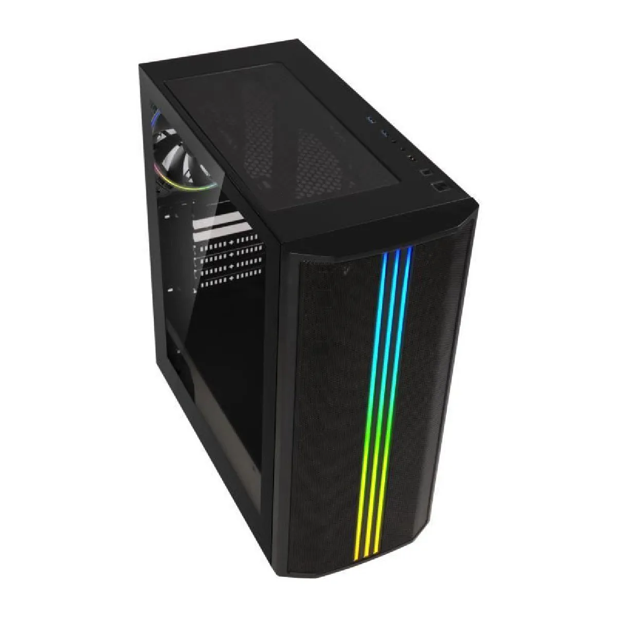 Le boîtier PC BitFenix Saber Mesh FRGB est conçu pour offrir un design moderne et aéré, parfait pour les configurations gaming. Disponible en noir, il intègre une façade en mesh pour maximiser l'airflow, tandis que le verre trempé latéral permet de mettre en valeur les composants internes. Ce design élégant et fonctionnel s'intègre parfaitement dans n'importe quel environnement gaming.