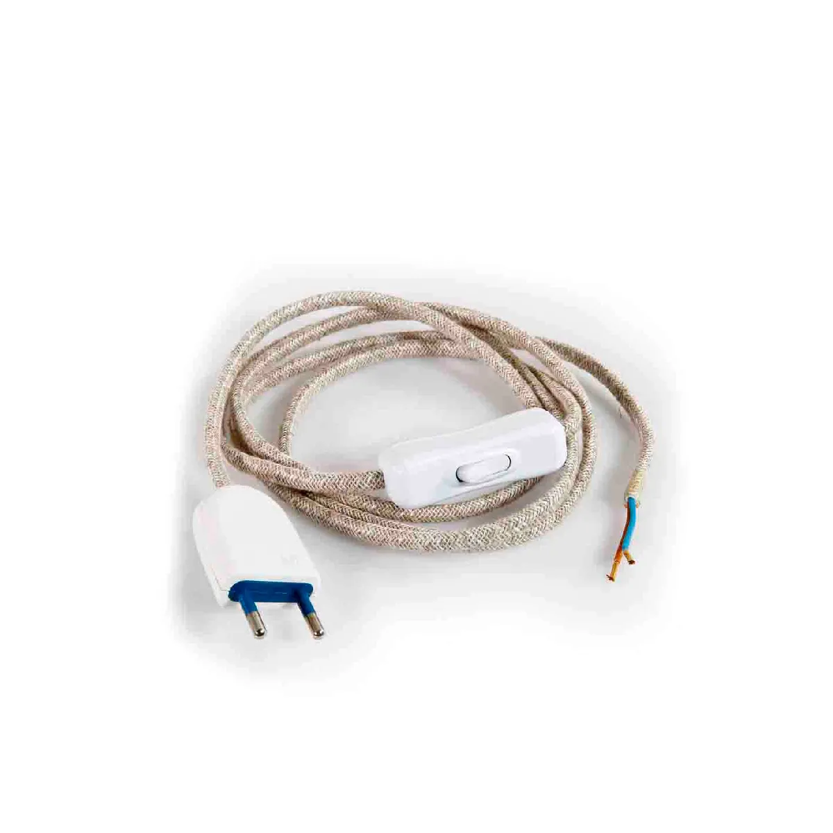 Le cordon de 2 m permet d'alimenter facilement une lampe ou un petit appareil tout en gardant un accès direct à l'interruption du courant. L'interrupteur d'éclairage intégré simplifie l'allumage et l'extinction sans atteindre la prise murale, avec une gestion aisée de l'alimentation au quotidien et une installation simple en environnement domestique. Conçu en textile, le câble offre une finition blanche discrète qui s'intègre dans la pièce. La section de 2 x 0,75 mm convient aux usages compatibles avec 3 A sous 220 V, en respectant les limites de l'équipement raccordé.