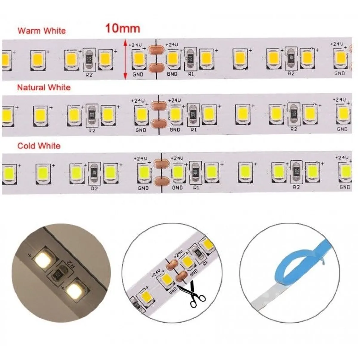 Ruban LED intérieur 24V DC - IP20 - SMD2835 - 60 LED/m - 9W/m - IRC >80 - Découpable tous les 10 cm - Non connecté
