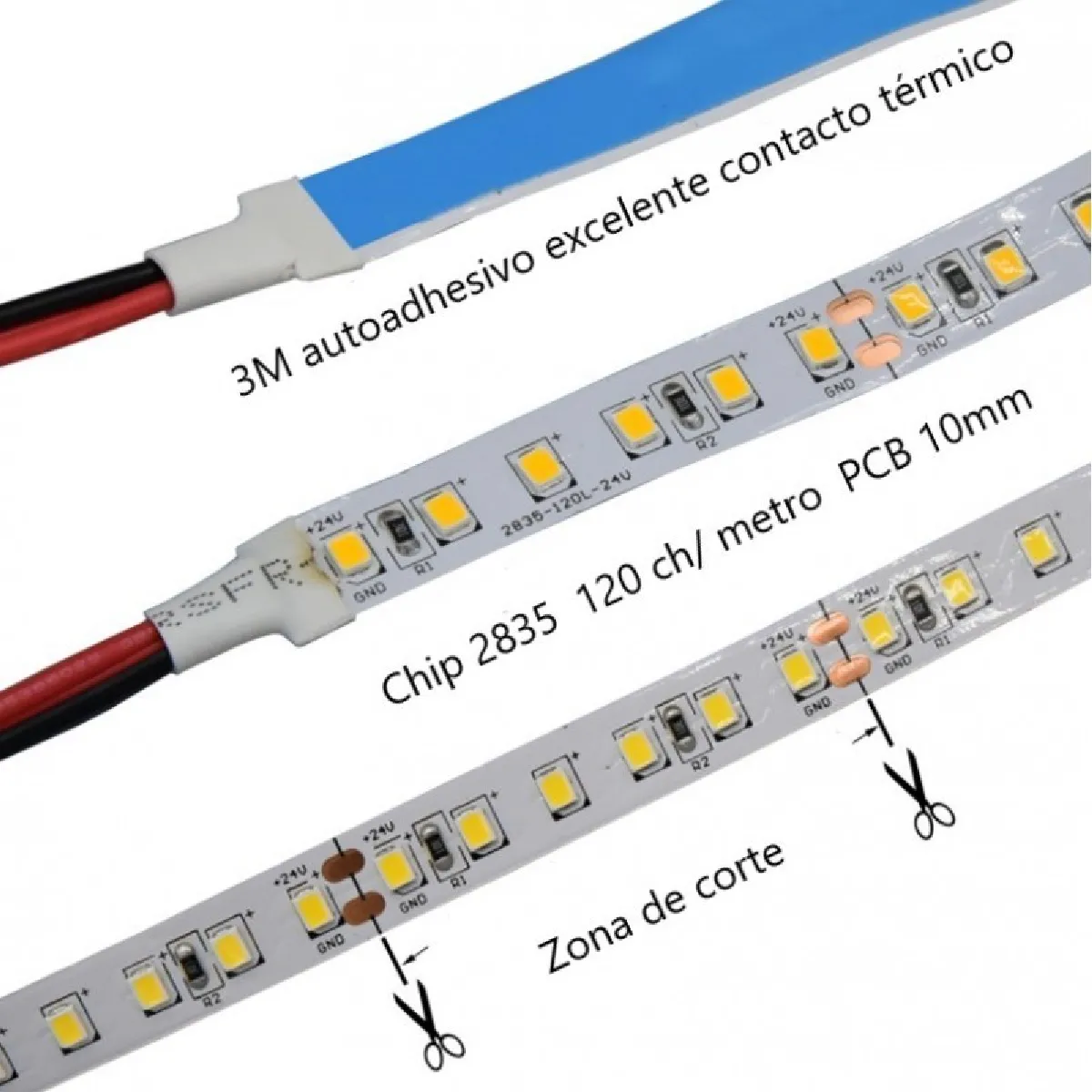 La puissance totale de 90 W, soit 18 W/m, délivre plus de 2000 lumens au global pour un éclairage efficace et uniformément réparti. Classé IP20, ce modèle convient aux environnements intérieurs secs, limitant l'exposition à l'humidité. Non connecté, il s'intègre facilement à une alimentation 24 V DC existante et se combine avec un variateur compatible pour adapter l'intensité aux besoins de présentation. Sa largeur de 1 cm facilite l'intégration discrète sous tablettes ou dans des profils aluminium dédiés.