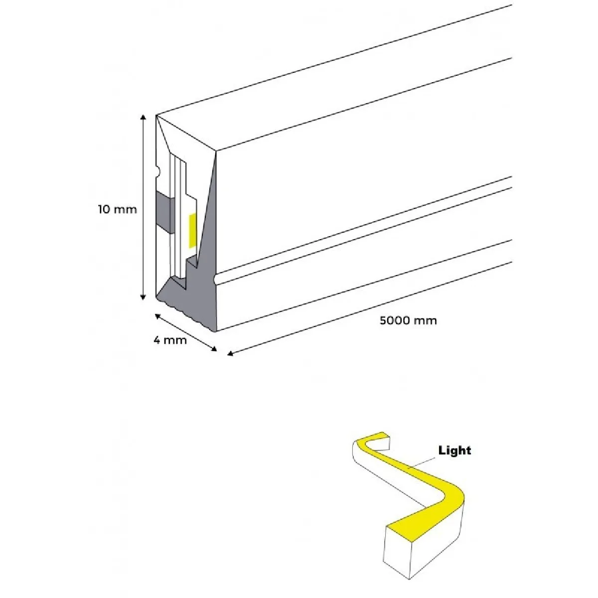 - Format 4 x 10 mm sur 5 m, alimentation 24 V DC pour une pose discrète et stable