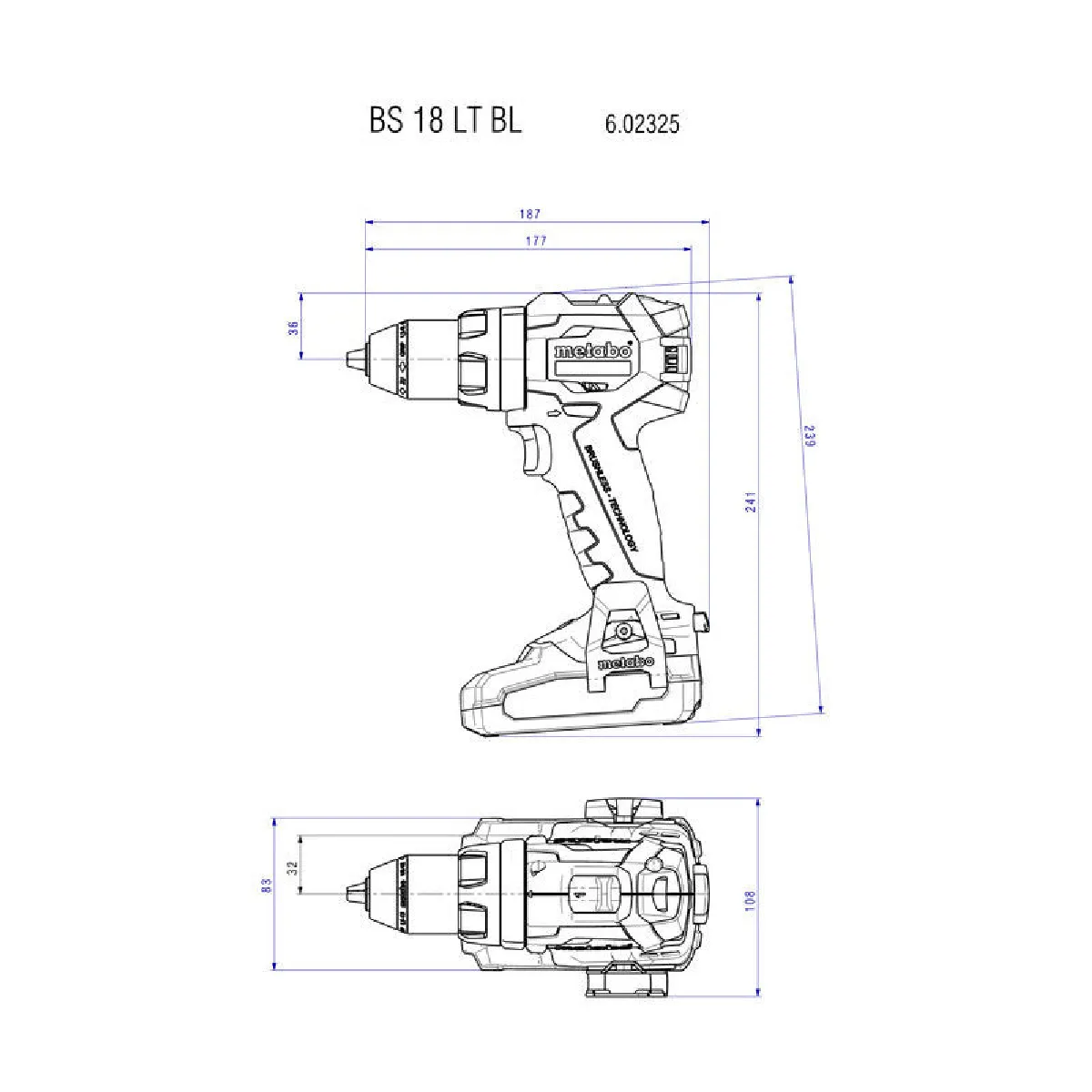 Caractéristiques techniques Perceuse visseuse sans fil 18V Brushless BS 18 LT BL - Metabo - 602325890 (Machine nue)