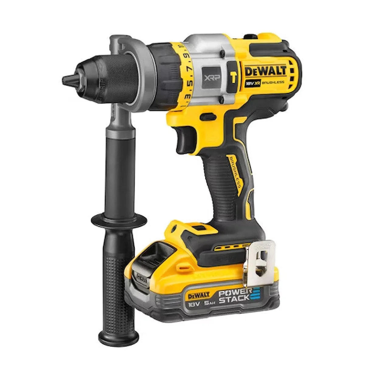 Le moteur Brushless 18 V à haut rendement fournit une puissance régulière tout en maîtrisant la consommation. Associée à deux batteries 5,0 Ah pour les longues sessions, la machine reste opérationnelle sur des séquences de perçage et vissage répétées. La conception vise à limiter les pertes d'énergie et à stabiliser la performance lorsque la charge augmente, utile pour les diamètres importants en bois et pour la percussion dans les matériaux plus denses.