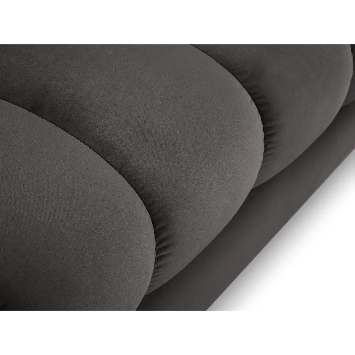L'assise généreuse offre un espace de détente pour s'allonger confortablement, tout en préservant une emprise au sol compacte et facile à intégrer. Son revêtement en velours gris foncé propose une surface douce et régulière, agréable au quotidien, et la structure droite s'adapte à un aménagement de salon ou d'espace d'accueil. Les dimensions 185 × 102 × 75 cm facilitent le positionnement contre un mur ou près d'une baie vitrée. Le piétement en métal doré de 15 cm apporte une garde au sol utile pour l'entretien et laisse passer la lumière sous le meuble. L'assise et le dossier coordonnés assurent un maintien homogène pour la lecture ou la relaxation prolongée.