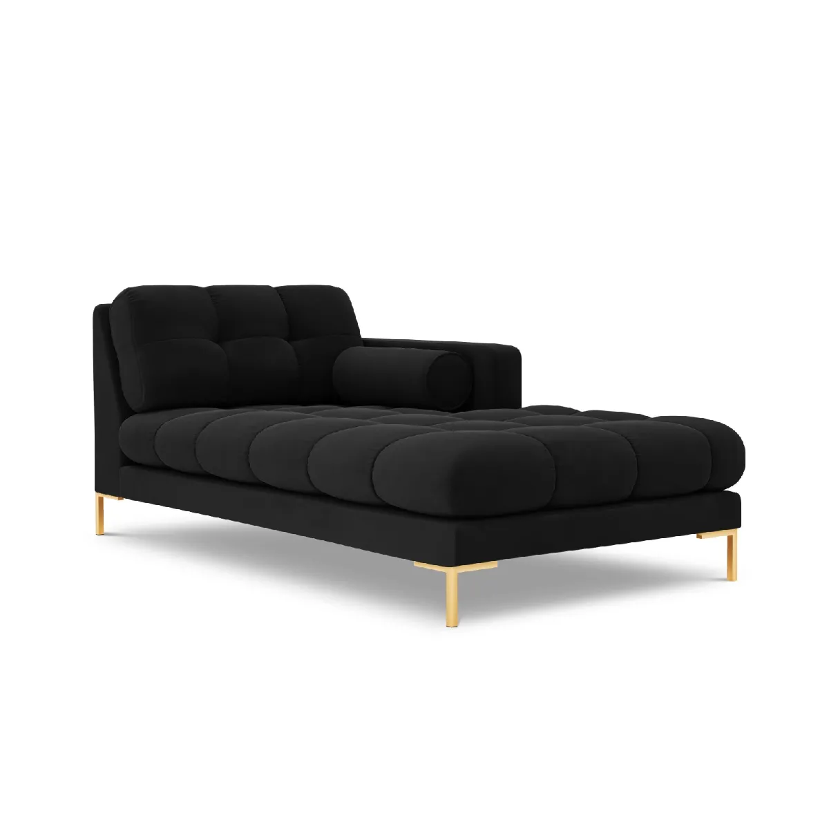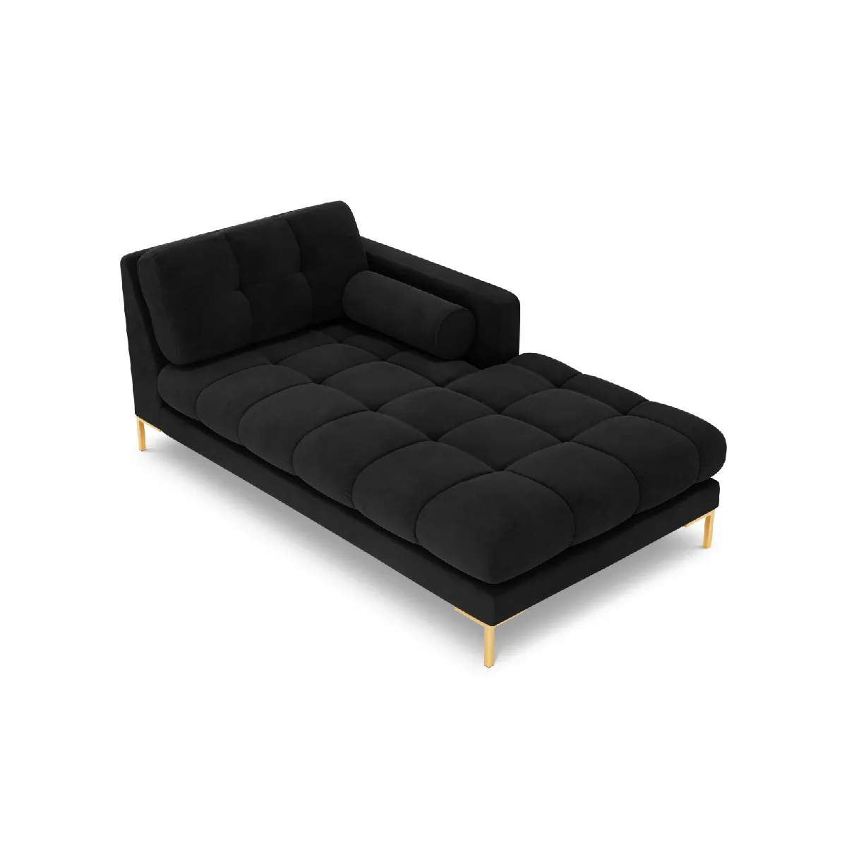 Une assise profonde soutenue par une structure en pin massif et panneaux techniques offre un confort constant pour la lecture, la détente ou un moment de pause. Le revêtement en tissu velours noir au toucher doux et soyeux s'intègre facilement dans un salon ou un espace d'accueil. Les pieds en métal doré de 15 cm apportent une note graphique et facilitent l'entretien sous le meuble. Le garnissage en mousse de polyuréthane assure un accueil équilibré, pensé pour une utilisation quotidienne. Grâce à des proportions généreuses de 185 x 102 x 75 cm, cette méridienne propose un couchage d'appoint d'une place tout en restant simple à positionner contre un mur ou près d'une baie vitrée.