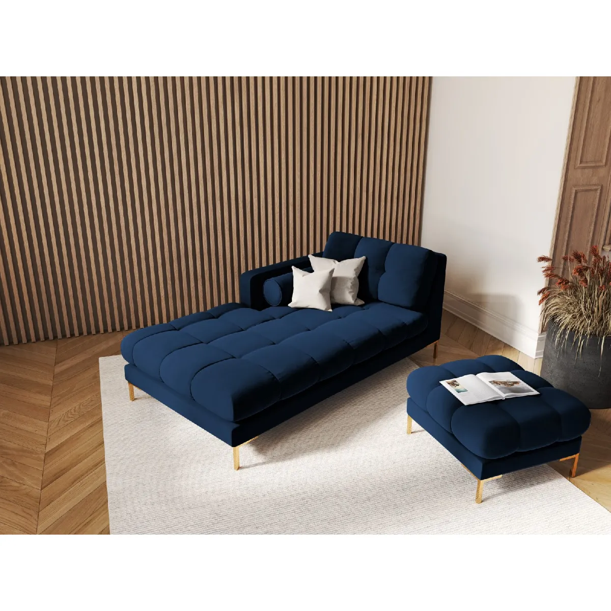 Méridienne gauche « Bali » en velours bleu roi