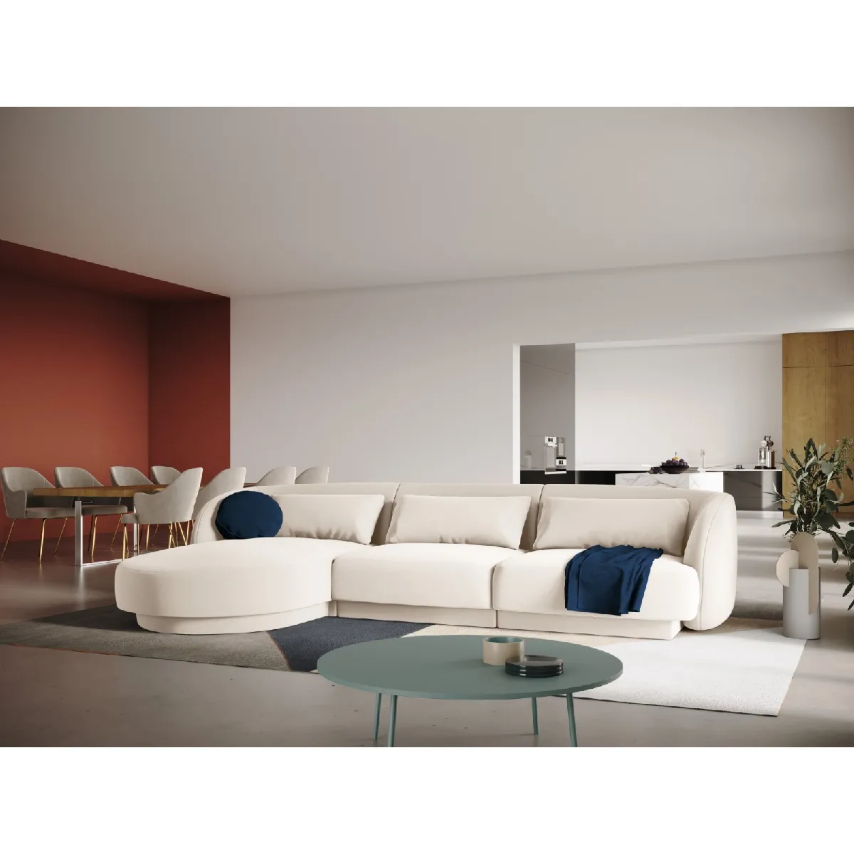 Cosmopolitan Design Canapé d'angle gauche "Tulum" 4 places en velours beige clair |