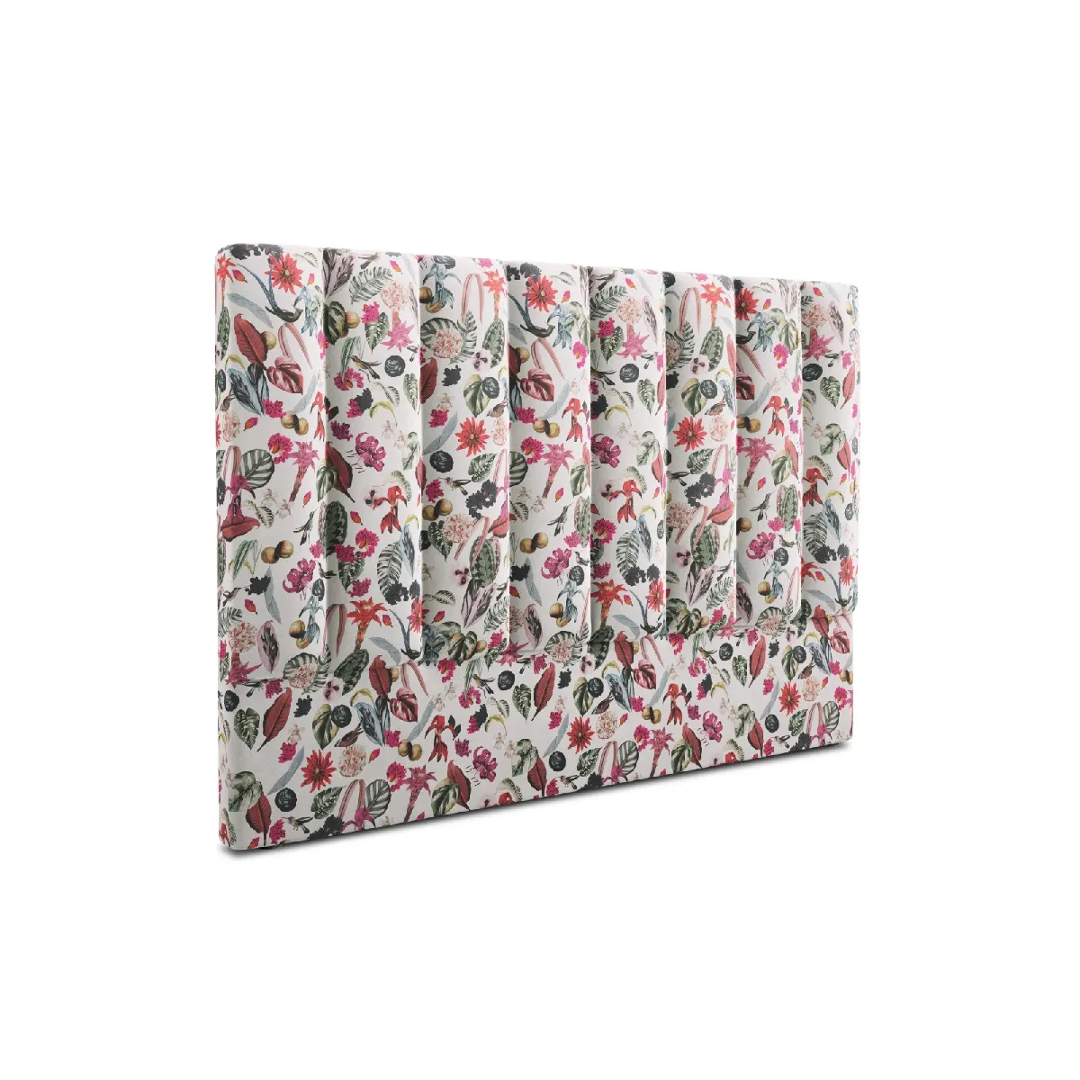 Le dossier généreusement rembourré offre un appui stable pour lire, travailler ou se détendre, tout en apportant une note décorative avec son velours moelleux au toucher soyeux. Les coutures verticales formant un motif élégant structurent visuellement la tête de lit et rehaussent l'ambiance de la pièce. Conçue pour un couchage de 180, elle présente des dimensions de 180 x 8 x 120 cm pour une intégration aisée derrière le lit. Le tissu en polyester se nettoie à l'eau et peut être repassé à basse température, ce qui simplifie l'entretien au quotidien. Son coloris à motif tropical ajoute une présence graphique discrète et facile à coordonner.