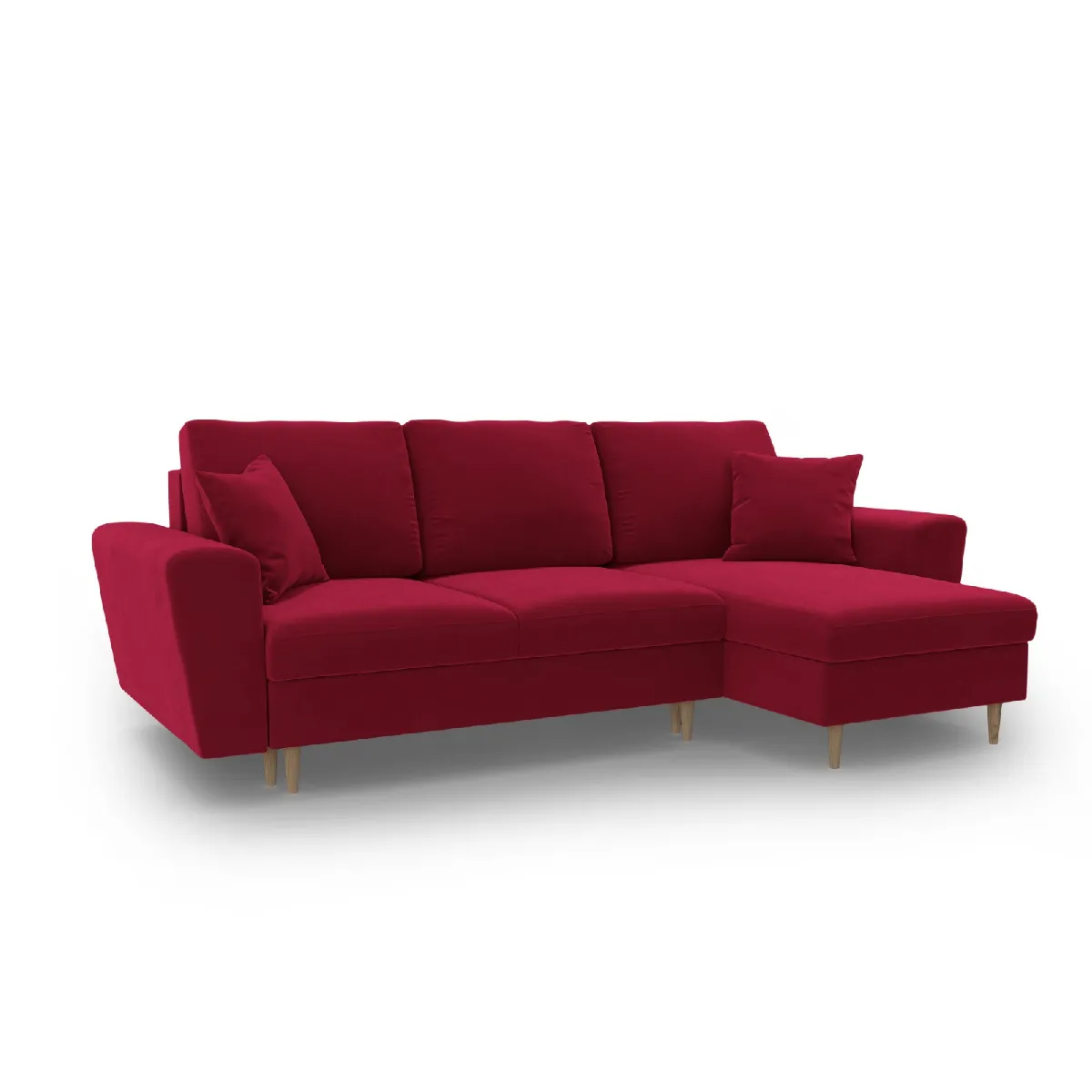 Cosmopolitan Design Canapé d'angle réversible convertible avec coffre de rangement "Kyoto" 4 places en velours rouge |