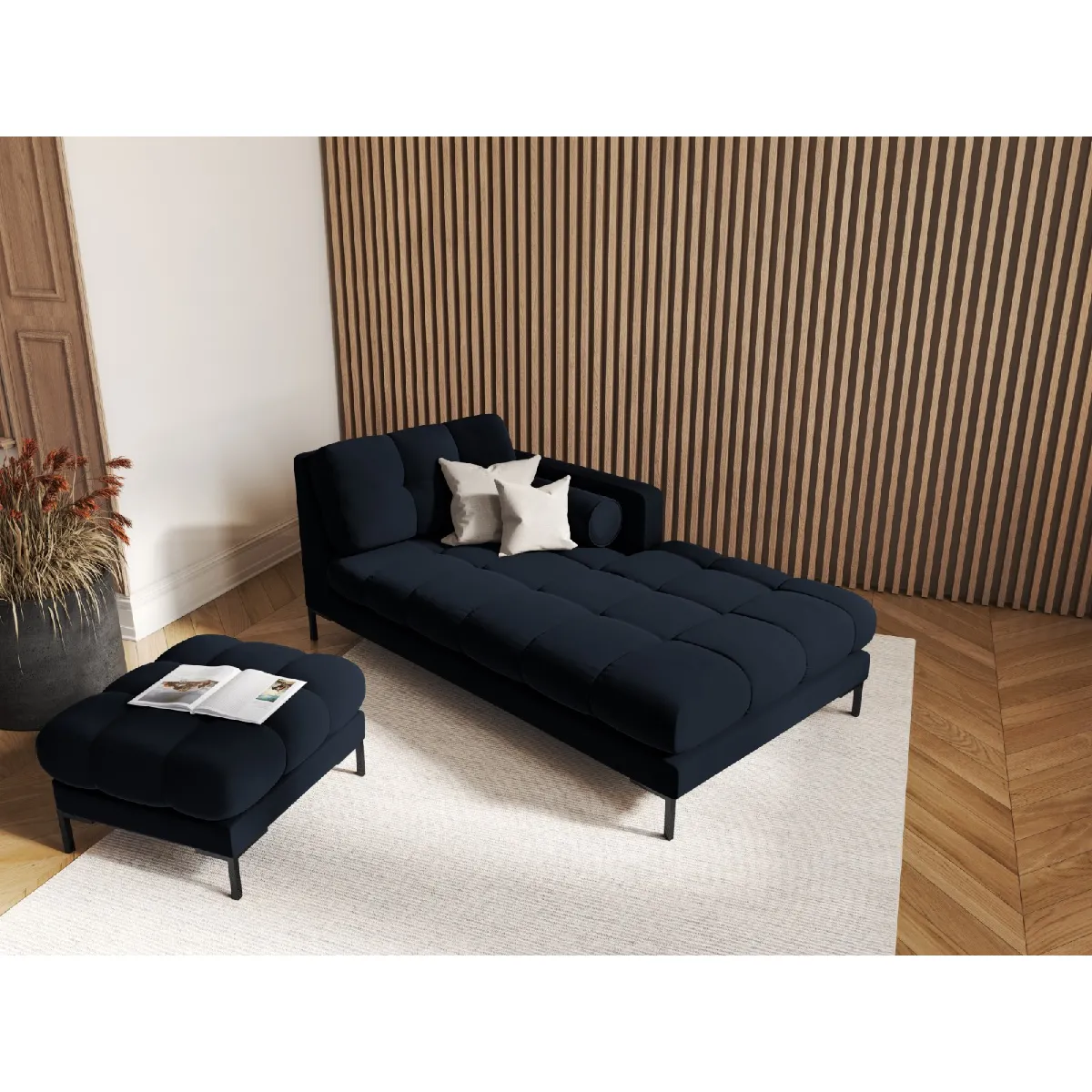 Méridienne droite « Bali » en velours bleu foncé
