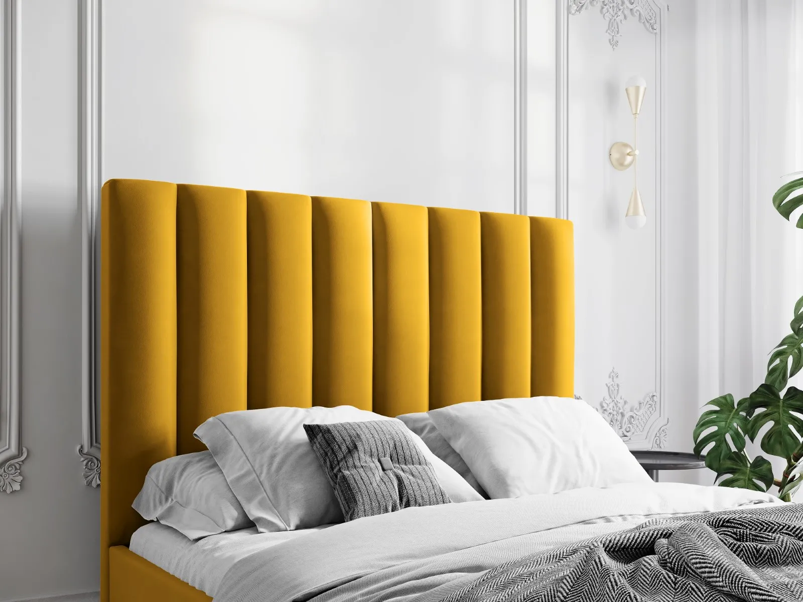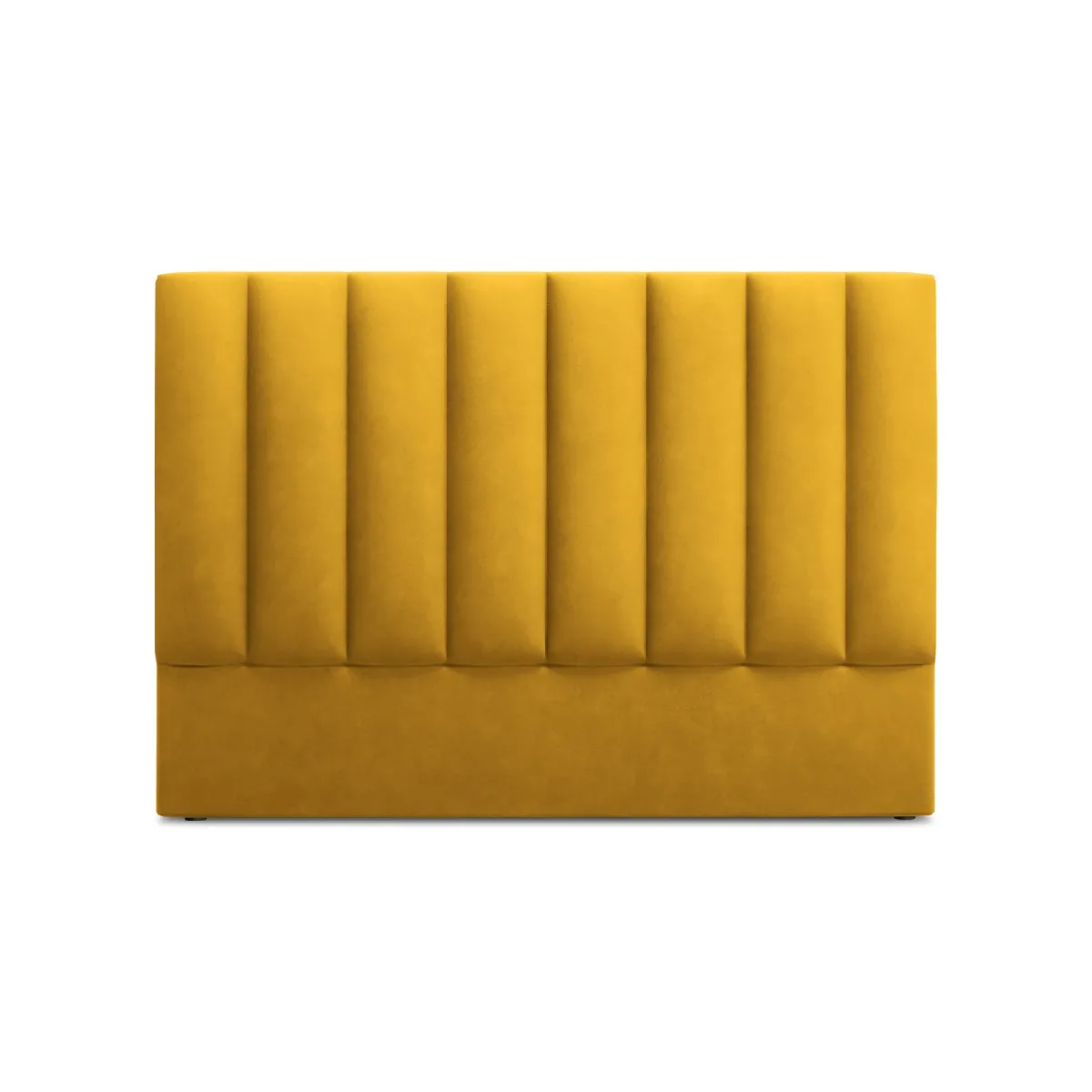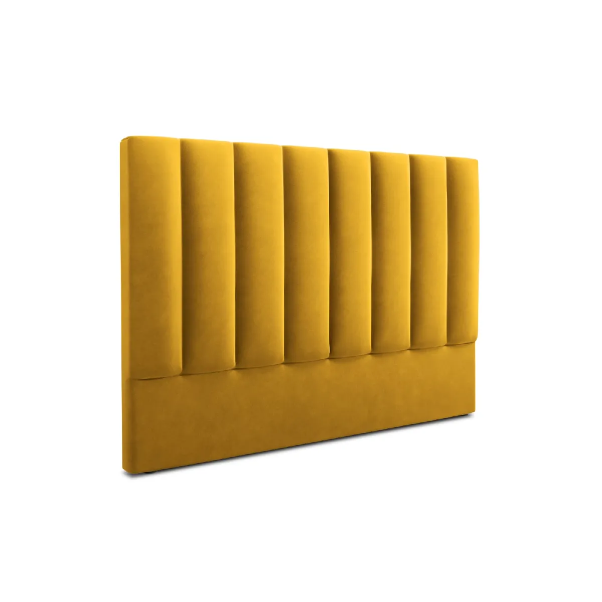 Le revêtement en velours présente une surface moelleuse et soyeuse agréable au quotidien, tout en offrant une bonne résistance à l'abrasion pour préserver l'aspect dans le temps. Le rembourrage crée un soutien confortable pour lire, regarder un écran ou se détendre sans contact direct avec le mur. Les coutures verticales apportent un rendu graphique mesuré, adapté aux ambiances contemporaines comme au style campagne souligné par la couleur jaune.