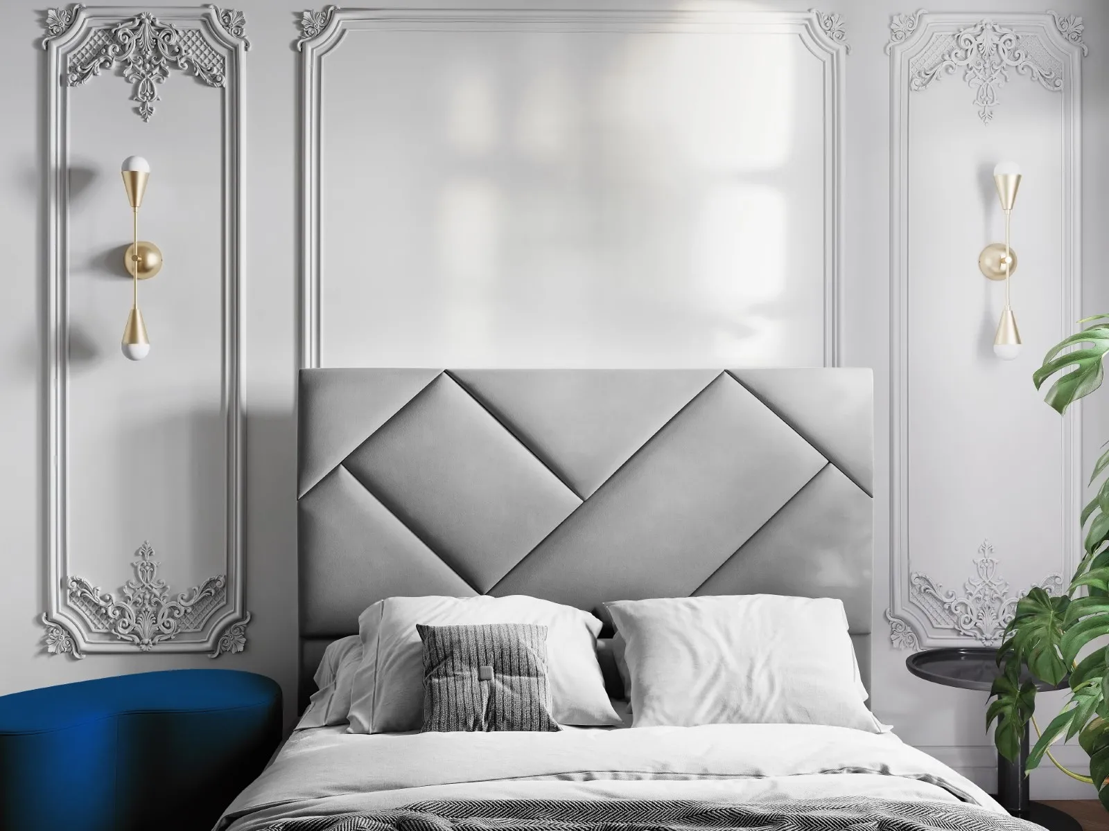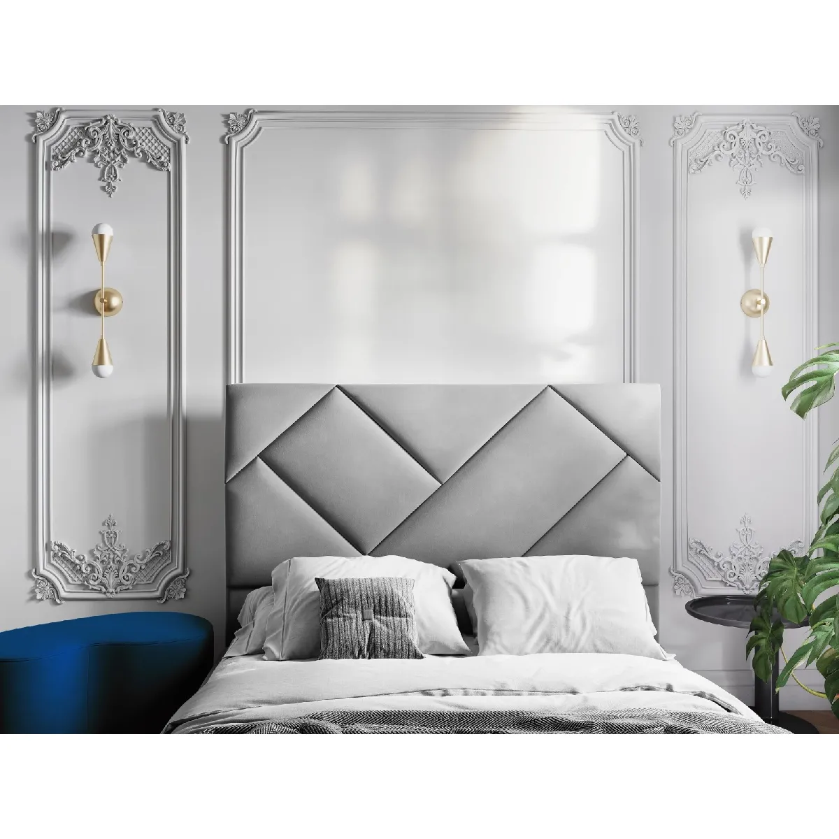 Tête de lit - Velours - Gris clair - Style classique
