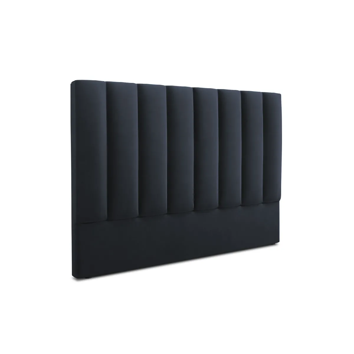 Avec ses dimensions de 180 x 8 x 120 cm et son poids d'environ 25 kg, l'ensemble est stable une fois positionné derrière le lit. Le velours à bonne résistance à l'abrasion favorise la durabilité, tandis que l'entretien à l'eau et le repassage à basse température simplifient le soin au quotidien. Le coloris bleu foncé se marie à des ambiances claires ou boisées et souligne une décoration de style classique. Le piètement en plastique noir (hauteur 3 cm) facilite l'alignement et le calage contre le mur.