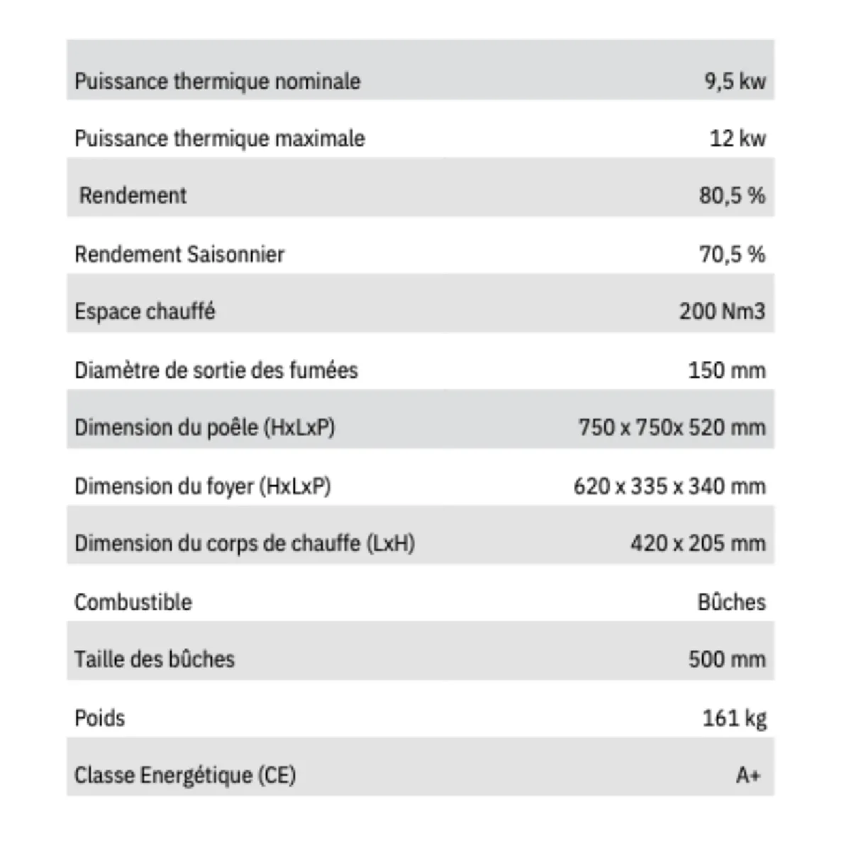 Commentaire vendeur : Le poêle à bois SIENNA 10 marie l’élégance d’un style ancien à des performances modernes, avec une fonte épaisse, une large vision de flamme et une forte capacité de restitution de chaleur.Le poêle SIENNA 10 allie le charme d’un style vintage à des performances de chauffage contemporaines. Conçu en fonte grise thermo-peinte de haute qualité, il se distingue par sa robustesse, sa longévité et son esthétique chaleureuse. Grâce à ses 165 kg de fonte, il emmagasine la chaleur et la restitue longtemps après l’extinction des flammes. Son foyer panoramique offre une large vue sur le feu, et ses doubles parois garantissent sécurité et efficacité. Il peut être installé aussi bien avec une sortie des fumées sur le dessus ou à l’arrière.