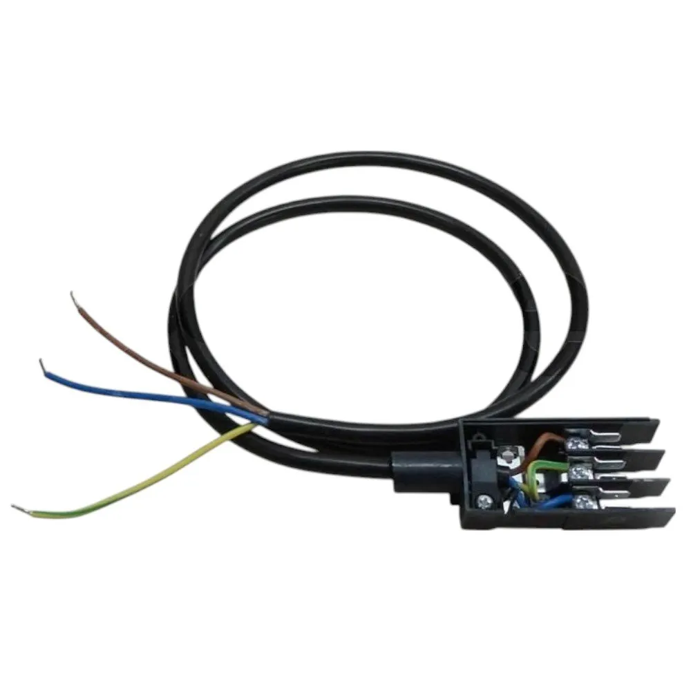 Le câble de 1 m intègre un côté ouvert à 3 fils pour le raccordement côté installation et une fiche mâle spécifique côté appareil, ce qui simplifie la mise en place et la maintenance. La compatibilité annoncée inclut notamment les modèles SMEG C7GPX8 et variantes associées. Le format de connecteur correspond au type d'accessoire de cuisinière : connecteur d'alimentation, destiné aux remplacements courants après usure ou intervention électrique, avec une longueur suffisante pour un passage propre jusqu'au bornier.