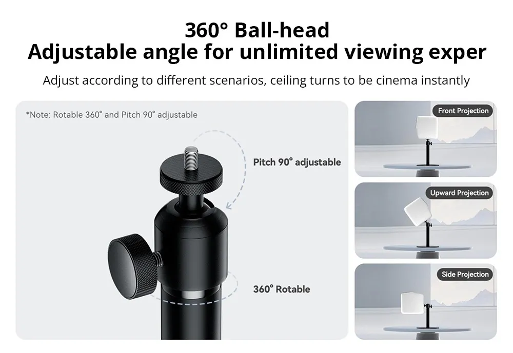 Angle réglable pour une expérience de visionnage illimitée dans différents scénarios : transformez instantanément votre plafond en cinéma.