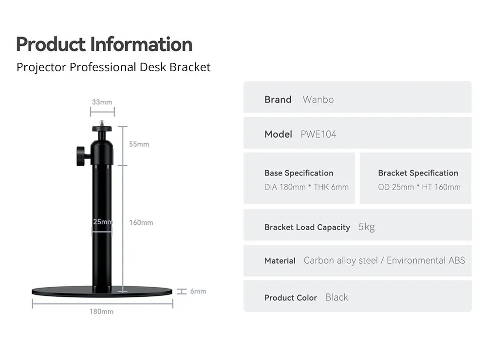 Couleur : Noir Spécifications Support de bureau Wanbo PWE104 pour projecteur