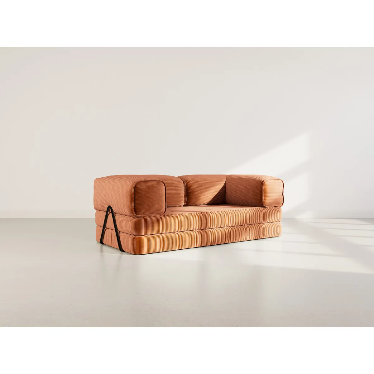 Poppy - canapé 3 places convertible en velours côtelé - Terracotta