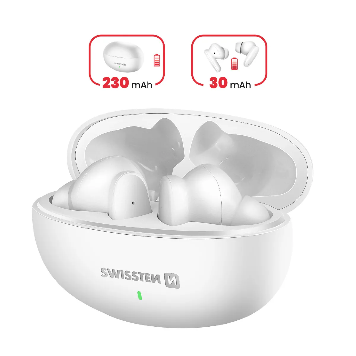 Swissten Écouteurs TWS Bluetooth 5.3 Musique et Appels Boitier 230mAh USB-C Blanc |