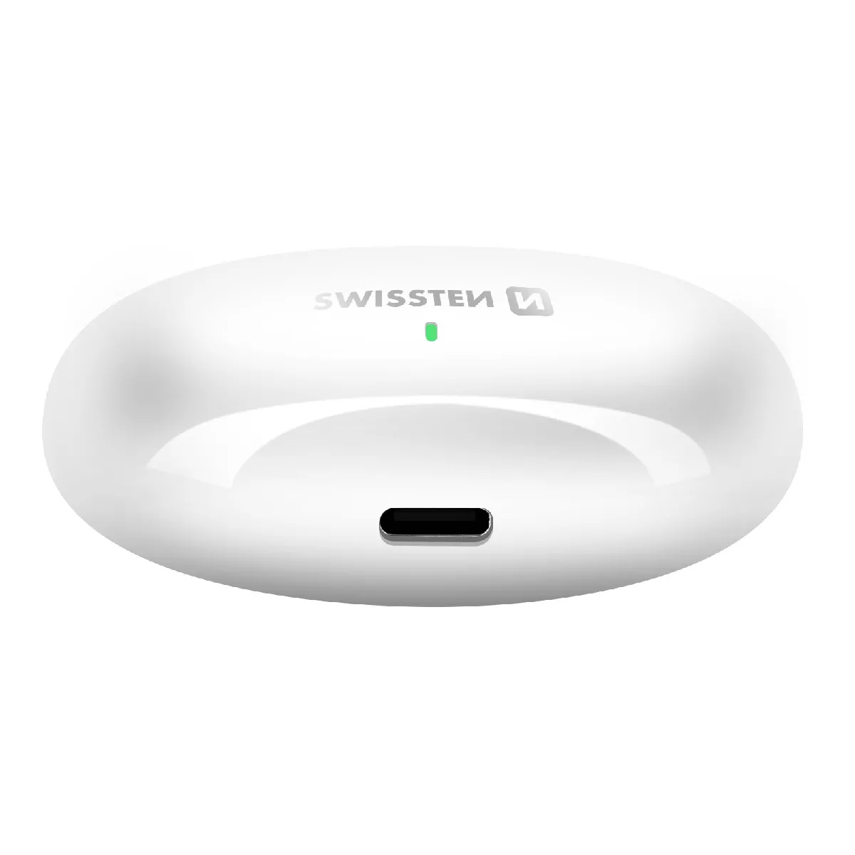 Swissten Écouteurs TWS Bluetooth 5.3 Musique et Appels Boitier 230mAh USB-C Blanc