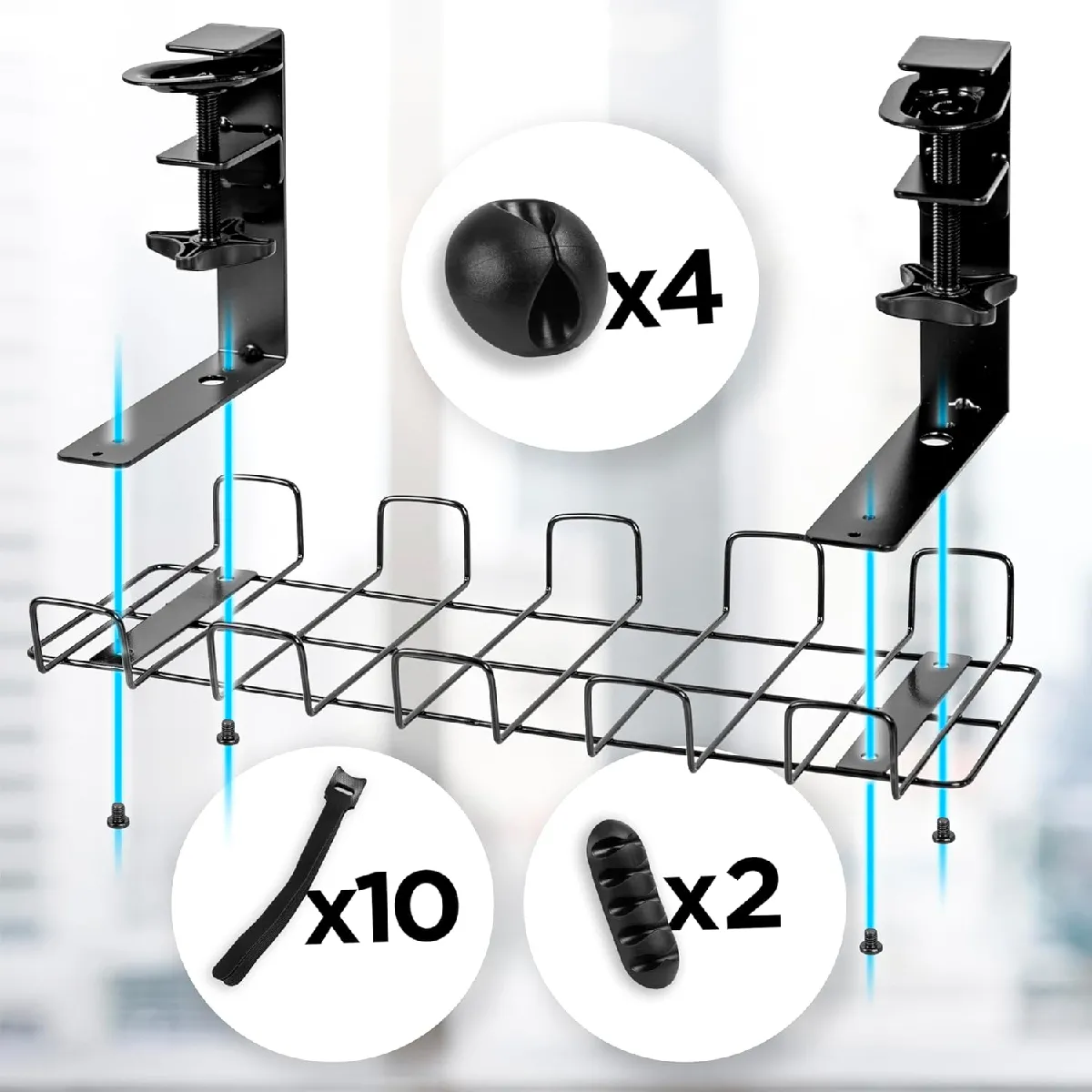 Duronic CMH2 Support de Gestion des Câbles à placer sous un Bureau Tiroir pour rangement et organisation des câbles et fils pour Installation Bureautique