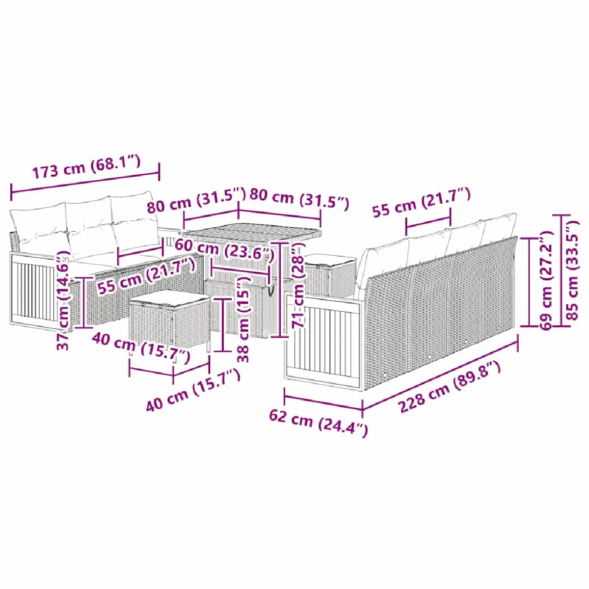 - Dimensions globales: 228 x 204 x 85 cm (L x l x H)