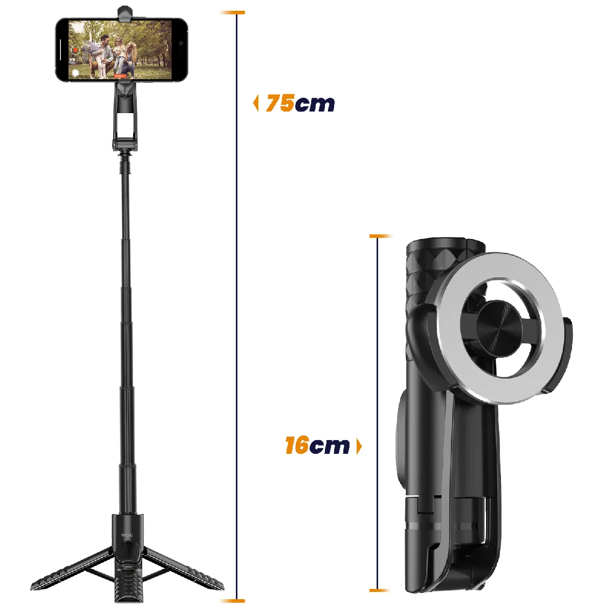 wiwu Perche selfie Magnétique Rotative 360° avec Télécommande Bluetooth Noir