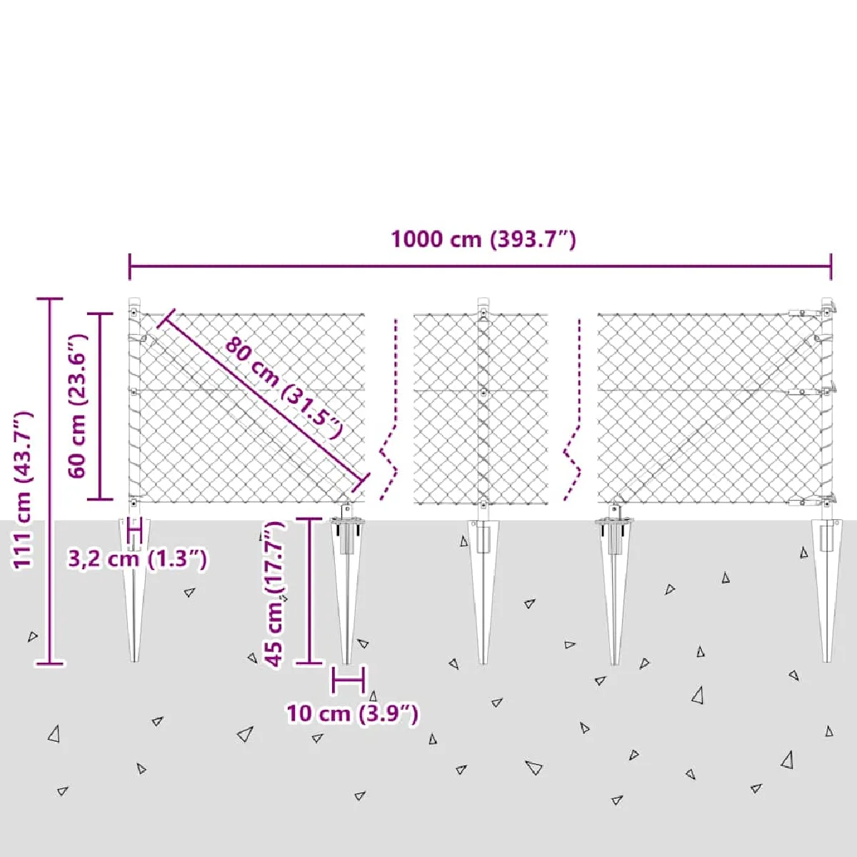 - Dimensions globales: 1000 x 3,2 x 60 cm (L x l x H)