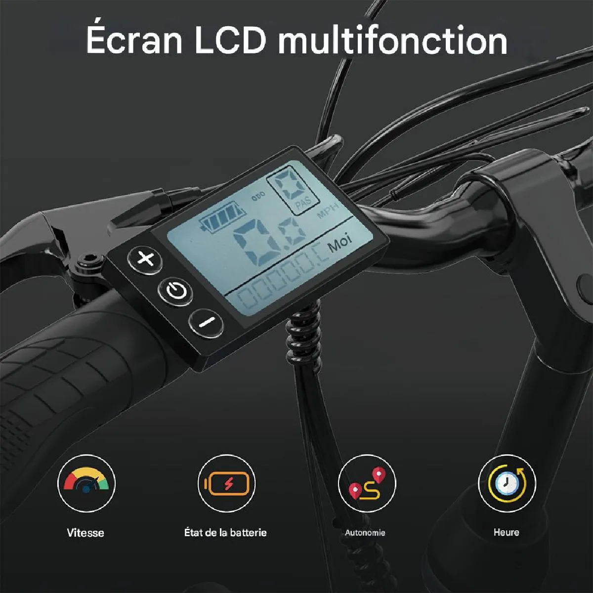 Conception de Haute Qualité et Sécurité Optimisée -Conçu pour une sécurité maximale, notre vélo électrique dispose de freins à disque pour un freinage rapide et fiable, même dans des conditions humides. Le P1 LCD affiche clairement les informations essentielles telles que la vitesse, l’autonomie et le kilométrage, pour vous offrir une expérience de conduite optimale.
