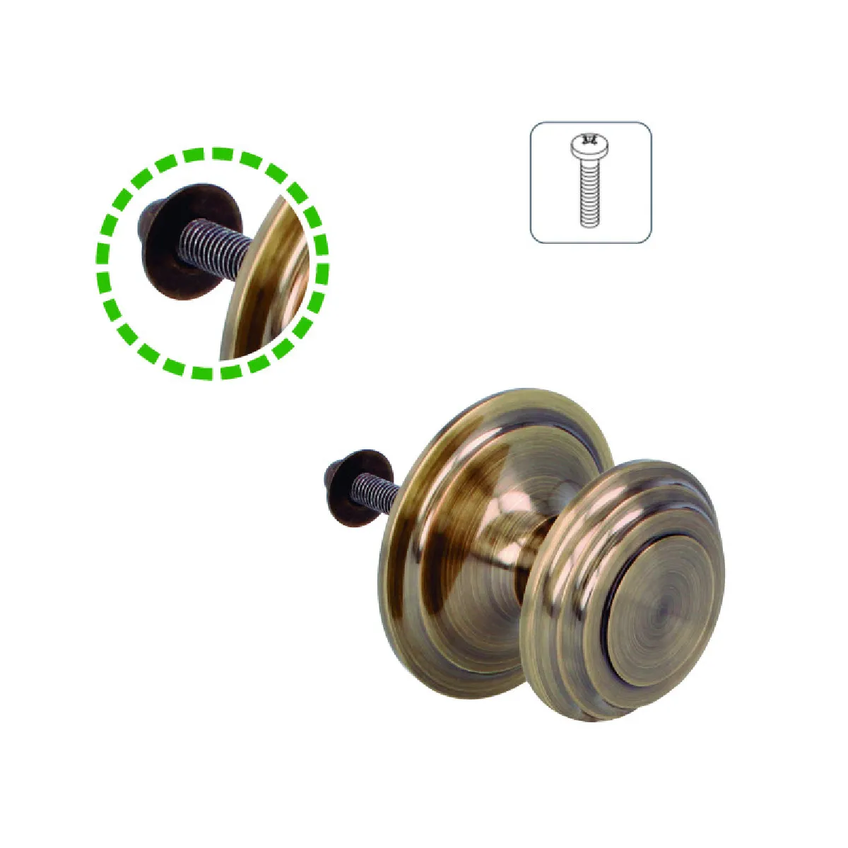 L'installation s'effectue simplement grâce à la tige filetée fournie avec vis et écrou arrière, assurant un montage stable sur des portes jusqu'à 70 mm d'épaisseur. Le bouton de porte en laiton massif offre une préhension fiable pour l'ouverture et la fermeture au quotidien, sans mécanisme de condamnation. Sa finition en laiton vieilli apporte un rendu discret et cohérent avec les entrées traditionnelles ou rénovées, tout en restant facile à entretenir.