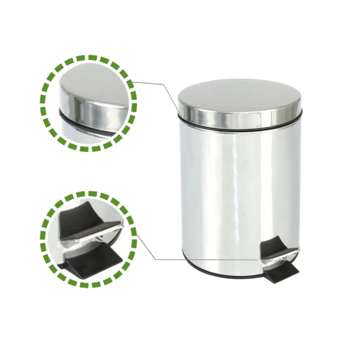 Poubelle en acier inoxydable de haute qualité avec traitement anti-trace s. Intérieur seau en plastique mobile/démontable avec anse. Avec pédale d 'ouverture.