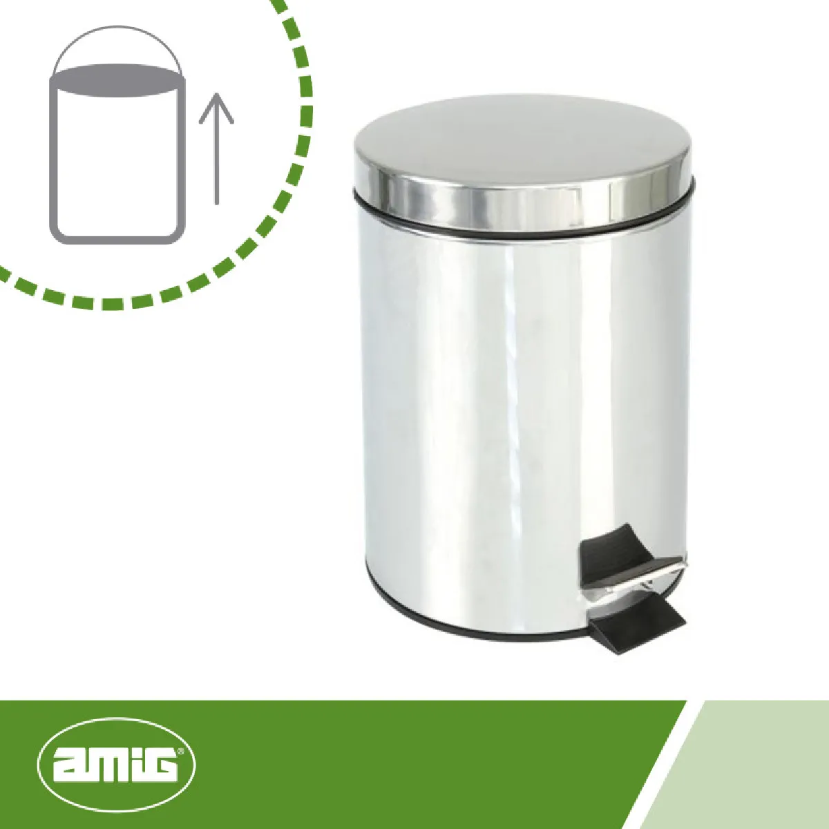 AMIG | Poubelle en acier inoxydable avec pédale BAKO | Ø25 x 39 cm | Acier inoxydable | Satin |