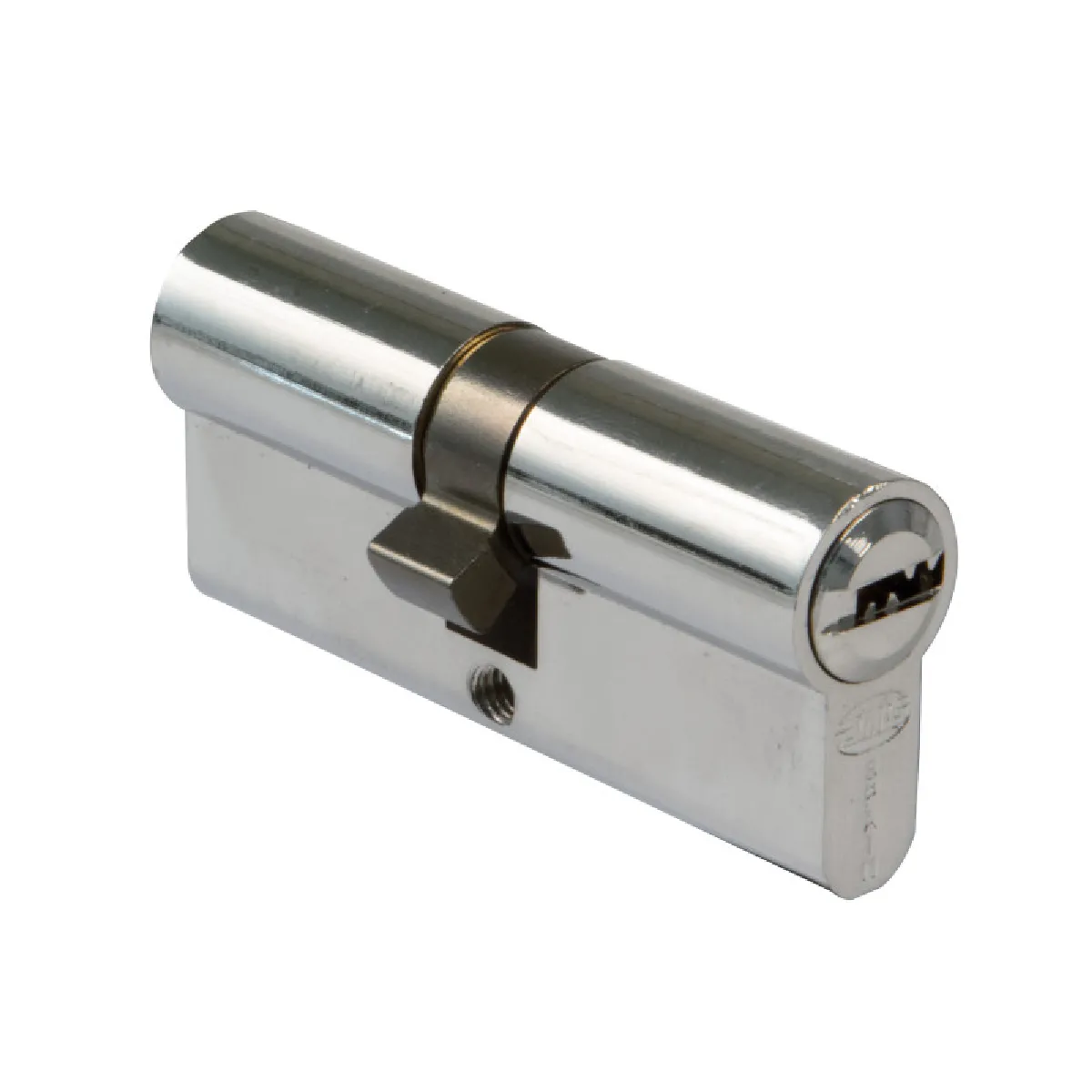 Cylindre de serrure - 2 entrées de clé - 6 points - laiton chromé brillant