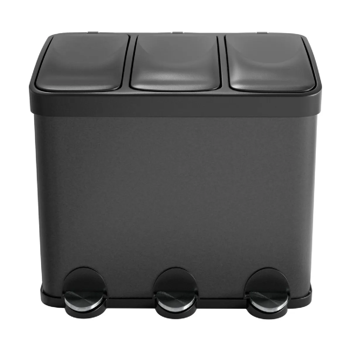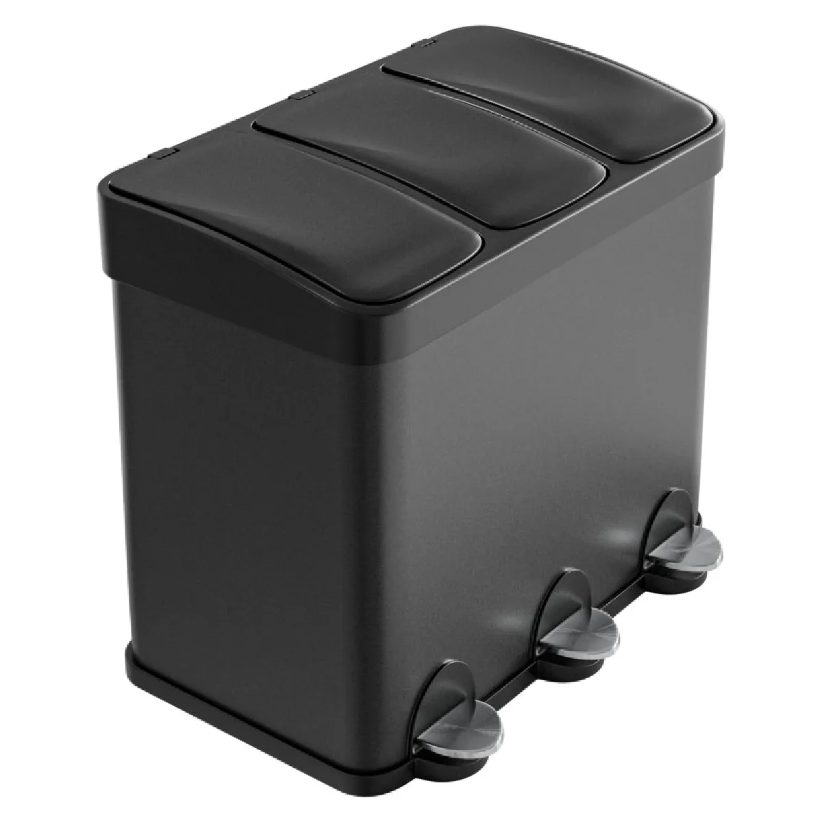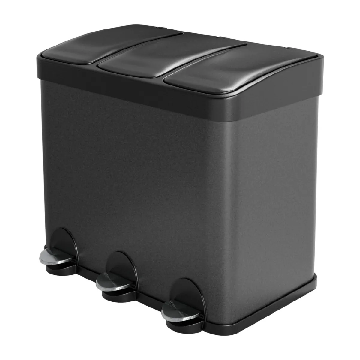 AMIG | Tripler poubelle de recyclage avec pédale RECIK3 | 60 x 37 x 49 cm | Acier | Noir mat |