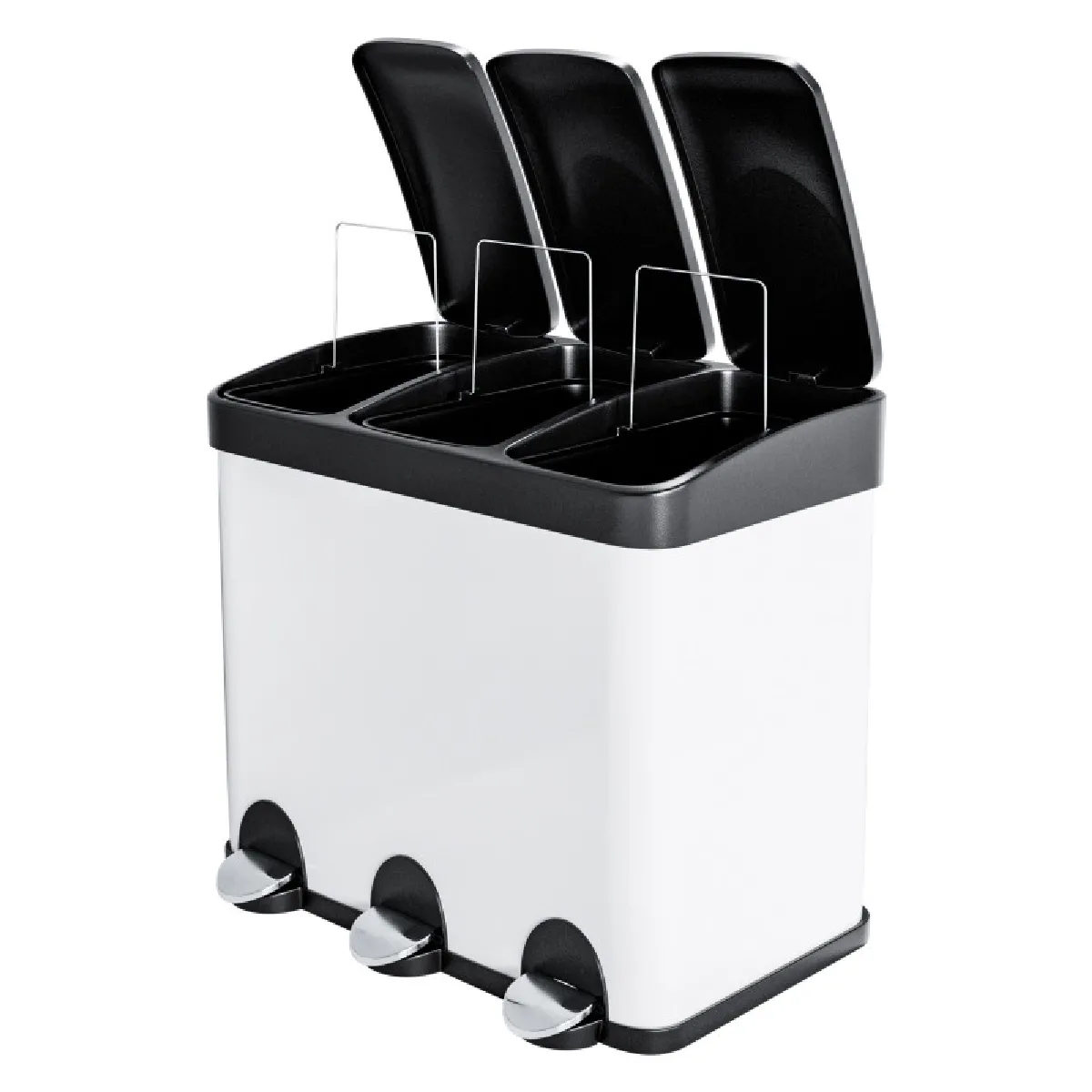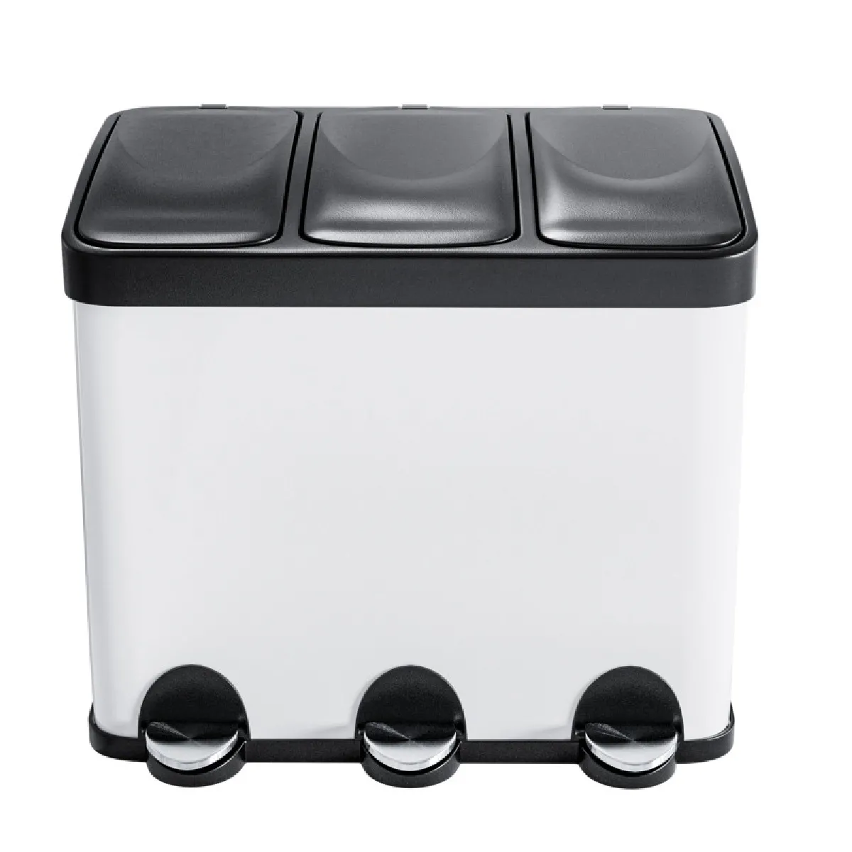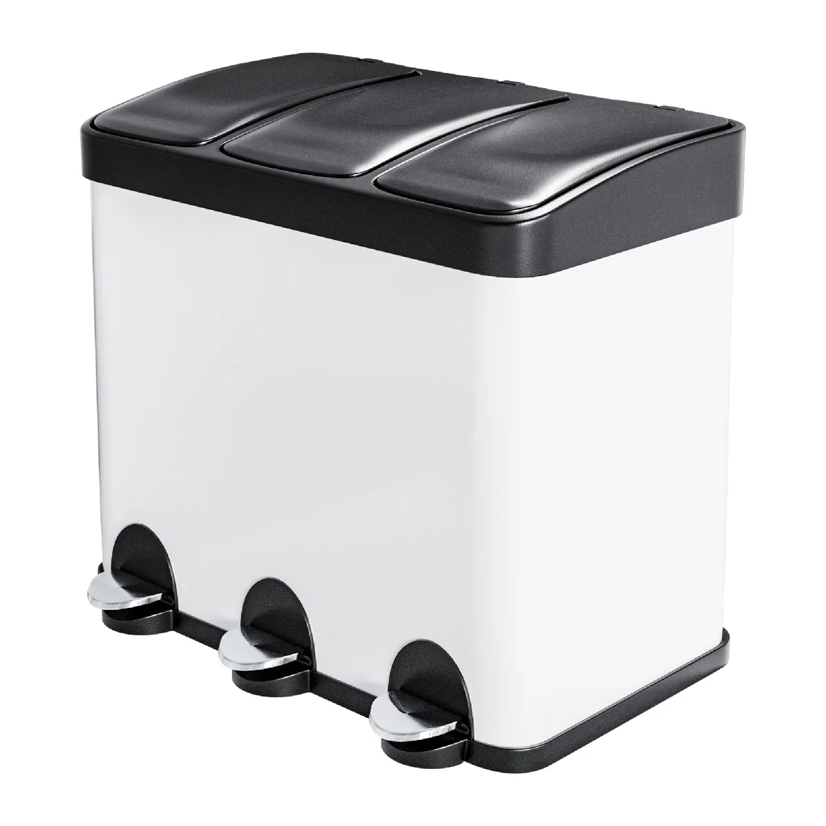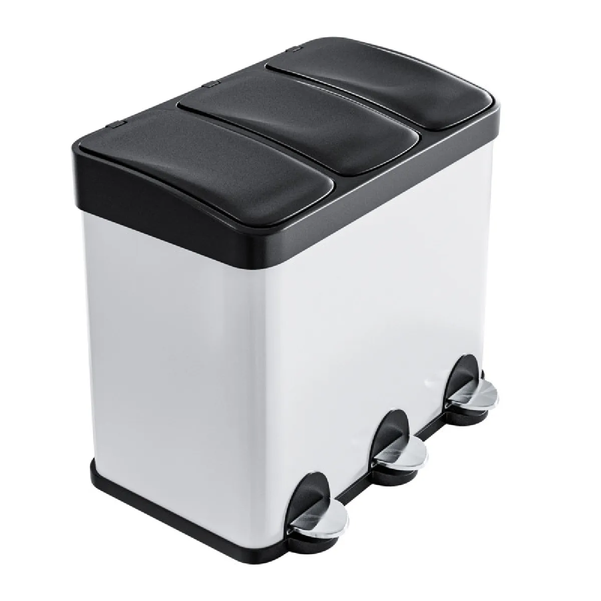 AMIG | Tripler poubelle de recyclage avec pédale RECIK3 | 60 x 37 x 49 cm | Acier | Blanc |