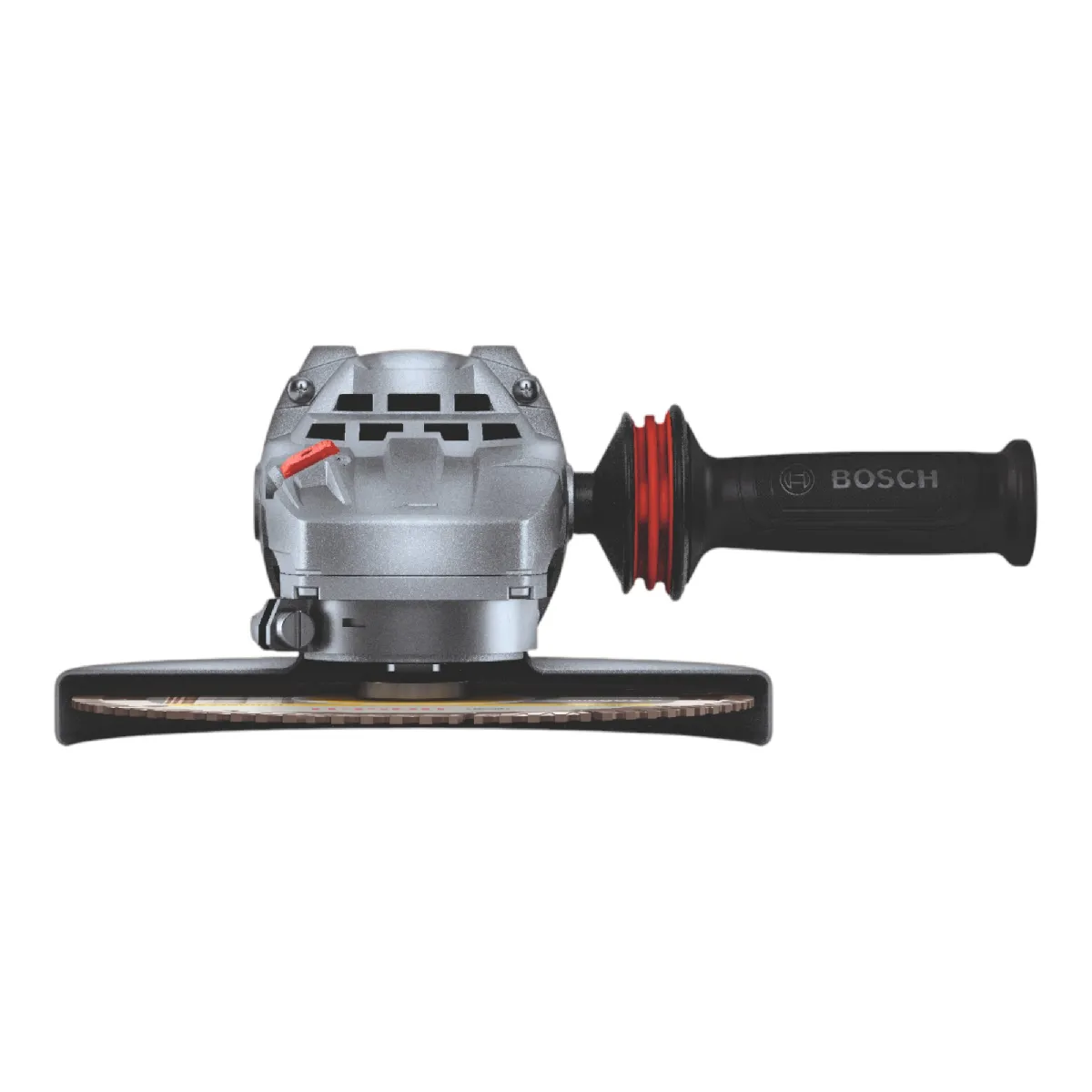 Le moteur a été conçu pour une dissipation thermique efficace afin de maintenir des performances constantes. Le démarrage en douceur limite les à-coups à l'enclenchement, utile lors de la pose d'un disque de grand diamètre. La protection contre le redémarrage évite tout départ involontaire après coupure de courant pour une utilisation plus sereine. Le capot de protection fourni se règle pour canaliser les étincelles lors des travaux d'acier, et le poids de 5,5 kg stabilise la machine sur les coupes longues.