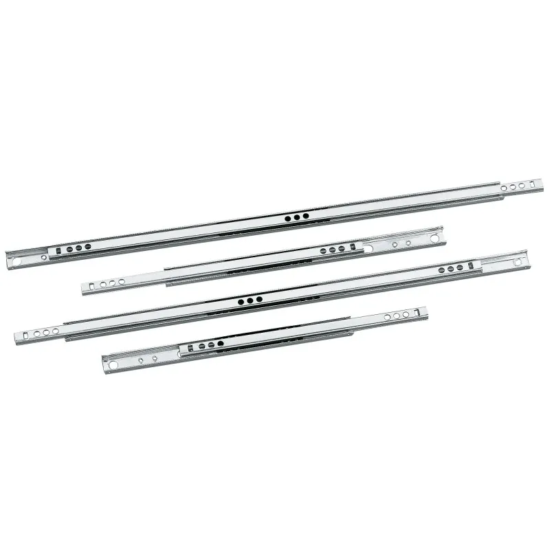 Le mécanisme de glissement à billes en acier maintient l'alignement lors des mouvements, limitant les frottements et prolongeant la durée d'usage. La finition zinguée aide à protéger la surface des agressions du quotidien, pour une utilisation régulière. Proposée à l'unité et fournie sans vis, cette coulisse s'intègre à divers meubles sans modifier leur structure. La sortie partielle avec guidage précis apporte une commande maîtrisée à l'ouverture comme à la fermeture, utile pour les rangements fréquemment sollicités.