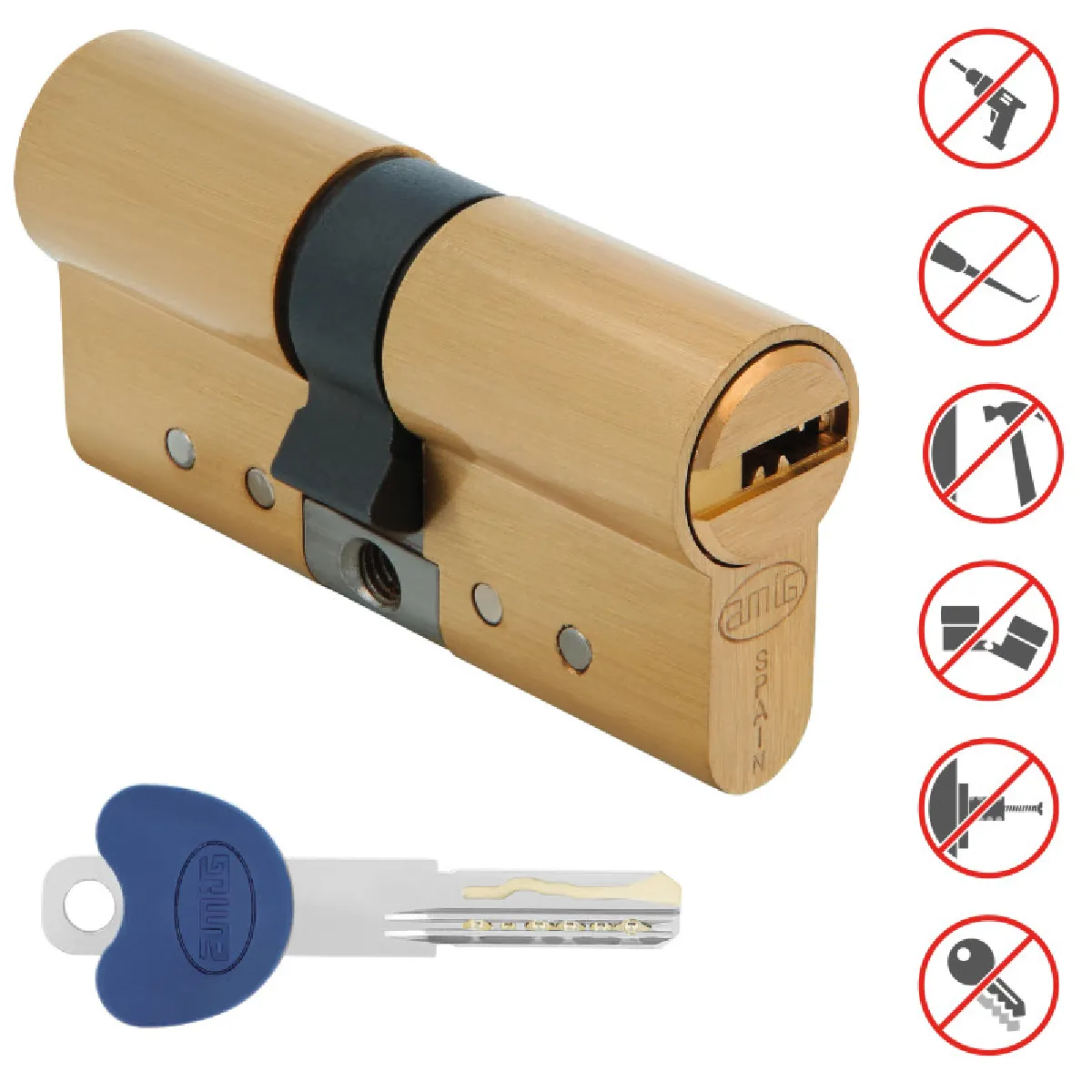 Livré avec 5 clés de sécurité à vague à tête en plastique, ce cylindre est codé et fourni avec une carte de propriété destinée au contrôle de la copie. Le dispositif est anti-crochetage et résistant aux coups, pour une dissuasion supplémentaire. Lors de la pose, veillez à ce que le cylindre ne dépasse pas de plus de 1 mm du protecteur de porte. Un entretien périodique est recommandé : utilisez un lubrifiant AMIG ou WD-40 tous les 5000 cycles afin de préserver la fluidité d'ouverture et la longévité.