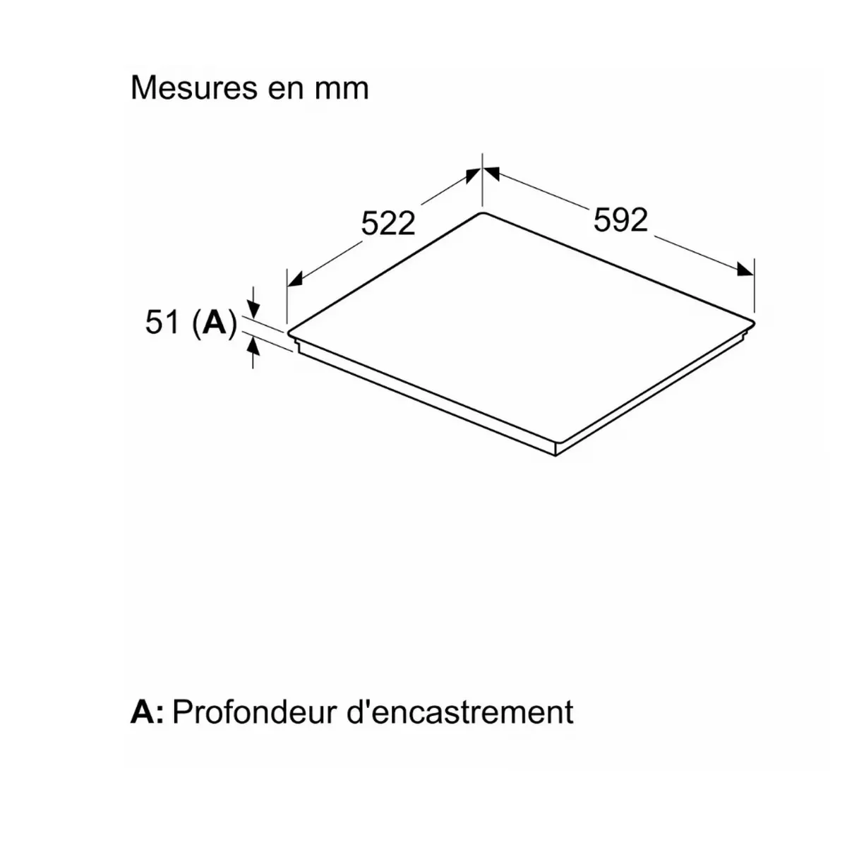 - Dimensions (L x P x H) : 59.2 x 52.2 x 5.1 cm ; Encastrement : 56 x 49 cm ; Cordon 1.1 m