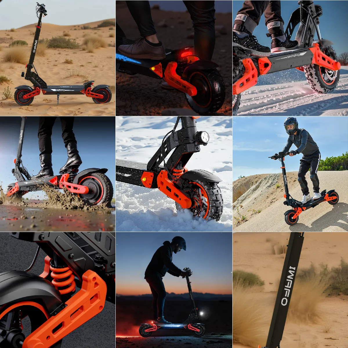 L'IWAFO IS2 dispose d'un degré de protection IP54, résistant aux éclaboussures, à la légère pluie, à la brume et à la poussière, garantissant une conduite sûre dans diverses conditions. Évitez l'immersion, les flaques profondes et les conditions météorologiques extrêmes pour protéger l'électronique. La certification protège contre une exposition accidentelle à l'eau, mais n'est pas conçue pour des conditions humides intentionnelles.
