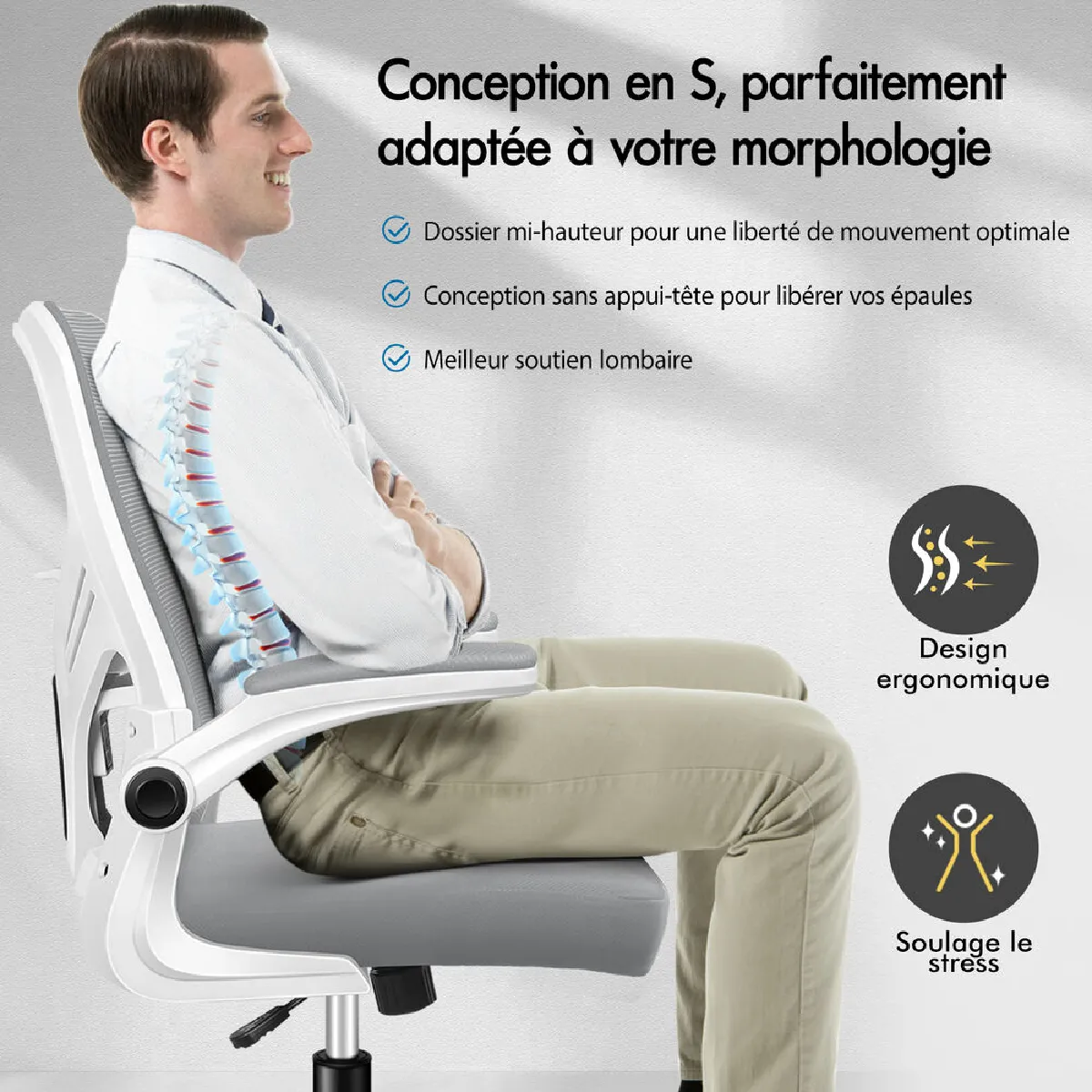Cette chaise de bureau présente une forme ergonomique en S sans appui-tête pour libérer vos épaules, ainsi qu'un dossier moyen pour une liberté de mouvement optimale. Dotée d'un soutien lombaire réglable, elle épouse la courbe de votre colonne vertébrale. Son revêtement en résille de qualité supérieure et son généreux rembourrage en mousse offrent un soutien parfait pour vous détendre et vous permettre de travailler ou de jouer au maximum de vos capacités pendant de longues périodes dans un confort optimal.
