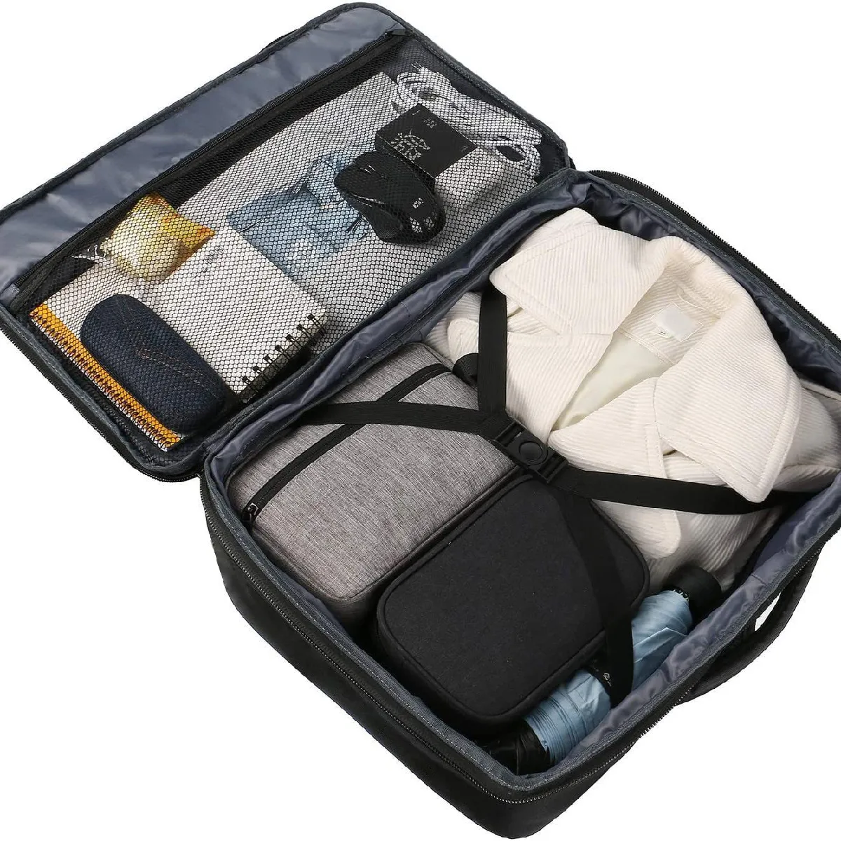 Adapté aux voyages : Le compartiment avant peut contenir des petits objets comme des téléphones, des écouteurs, etc. Le grand sac intérieur est équipé de bandes élastiques de compression. Les bretelles rembourrées incluent une sangle thoracique réglable en hauteur, qui passe sur la poitrine pour réduire le poids sur les épaules. Quatre bandes de compression externes empêchent les objets de bouger, permettant de gagner 1 ou 2 pouces d'espace vertical tout en réduisant la pression sur les fermetures éclair.