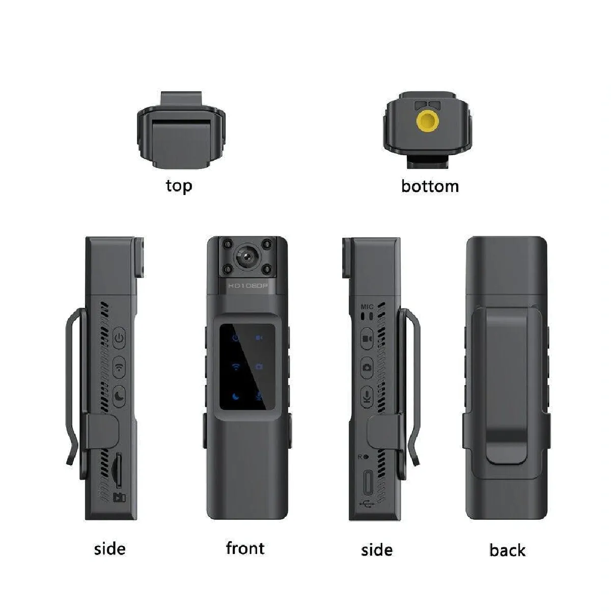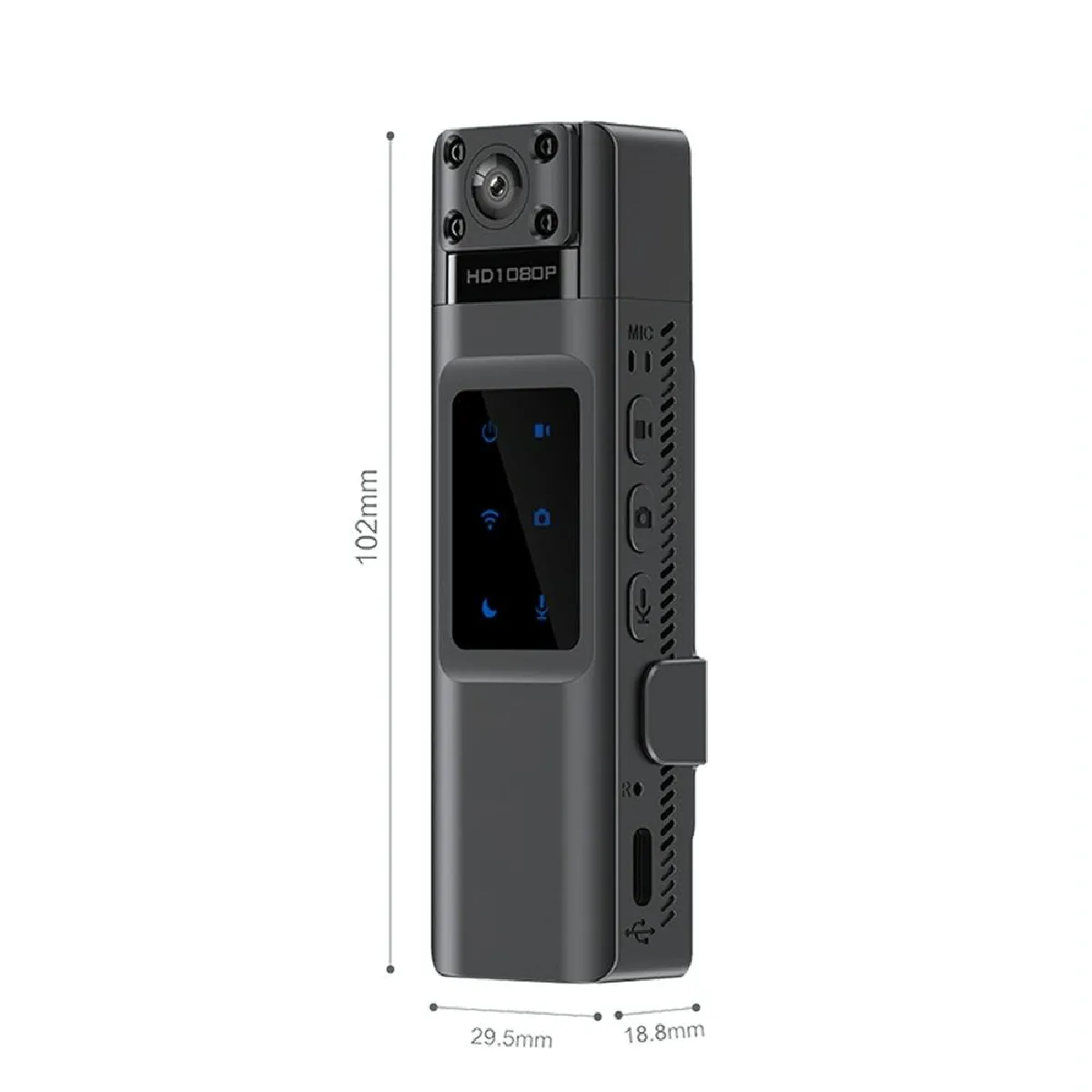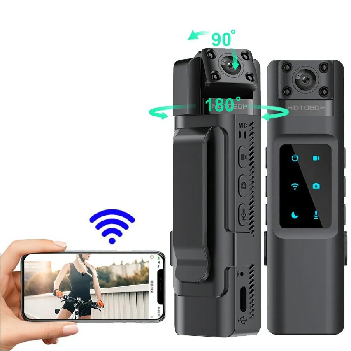 Grâce au WiFi intégré et au hotspot, la caméra se connecte à l'application dédiée pour une visualisation synchronisée sans réseau, la lecture, la mise en pause et d'autres opérations locales. La lecture/partage mobile sans fil simplifie l'extraction rapide des séquences sans ordinateur. La taille de 102 × 29,5 × 18,8 mm facilite la mise en place sur un vêtement ou un sac, et les méthodes de transport diversifiées offrent une adaptation simple aux pratiques quotidiennes.