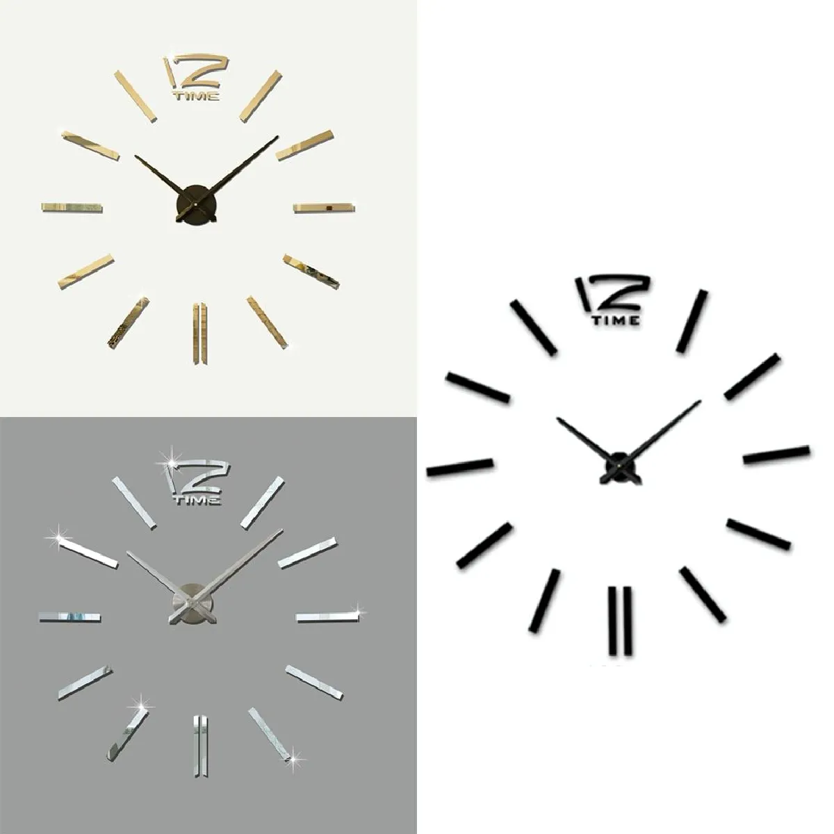 Horloge Murale 3D Moderne DIY Décoration Intérieure Grand Format Or Noir YONIS