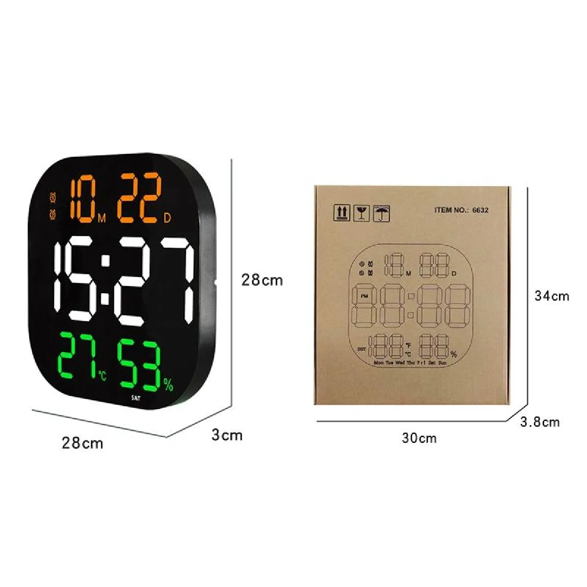 Horloge murale à grand écran LED, idéale pour embellir votre intérieur. Profitez de l'affichage de l'heure, de la date, de la température et de l'humidité en un coup d'il. Ajustez facilement la luminosité grâce à son capteur automatique. Pratique et moderne, cette horloge se contrôle à distance pour un confort optimal. Alimentation par USB, elle conserve l'heure même après une coupure de courant. Un choix parfait pour une maison contemporaine.